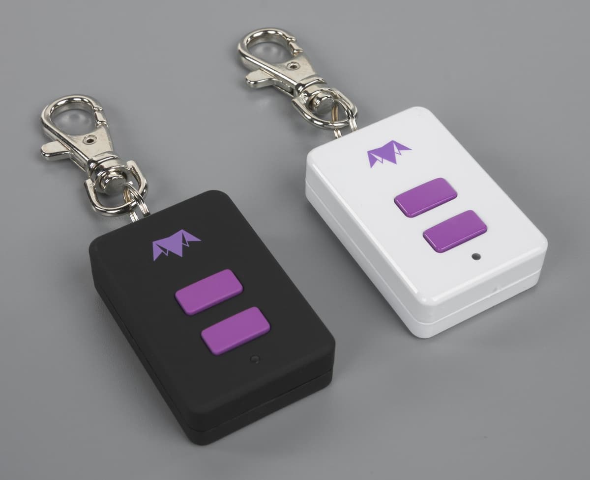 Так что самые маленькие пульты Aide Charm позволяют отправлять только одну команду. Но реагировать на нее может сразу несколько приемников. В комплекте поставляется сразу пара пультов. Внешние размеры корпуса — 30×45×15 мм. Белый имеет глянцевый пластик, а черный — матовый «софт-тач».
