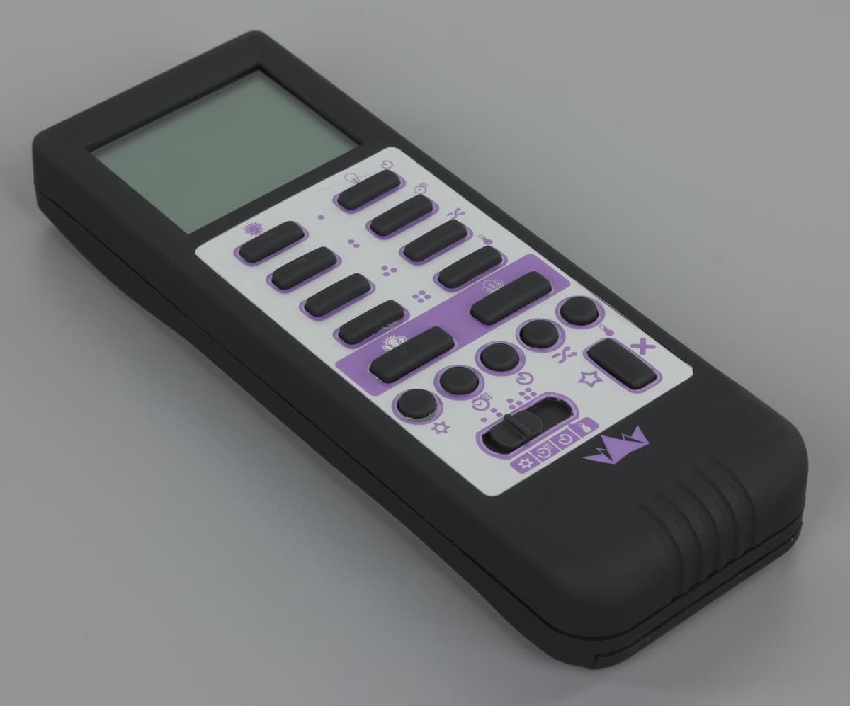 Наиболее сложное устройство в системе — пульт Aide I. Он заметно крупнее остальных (54×150×23 мм) и оборудован не только кнопками и переключателем групп, но и жидкокристаллическим дисплеем без подсветки.