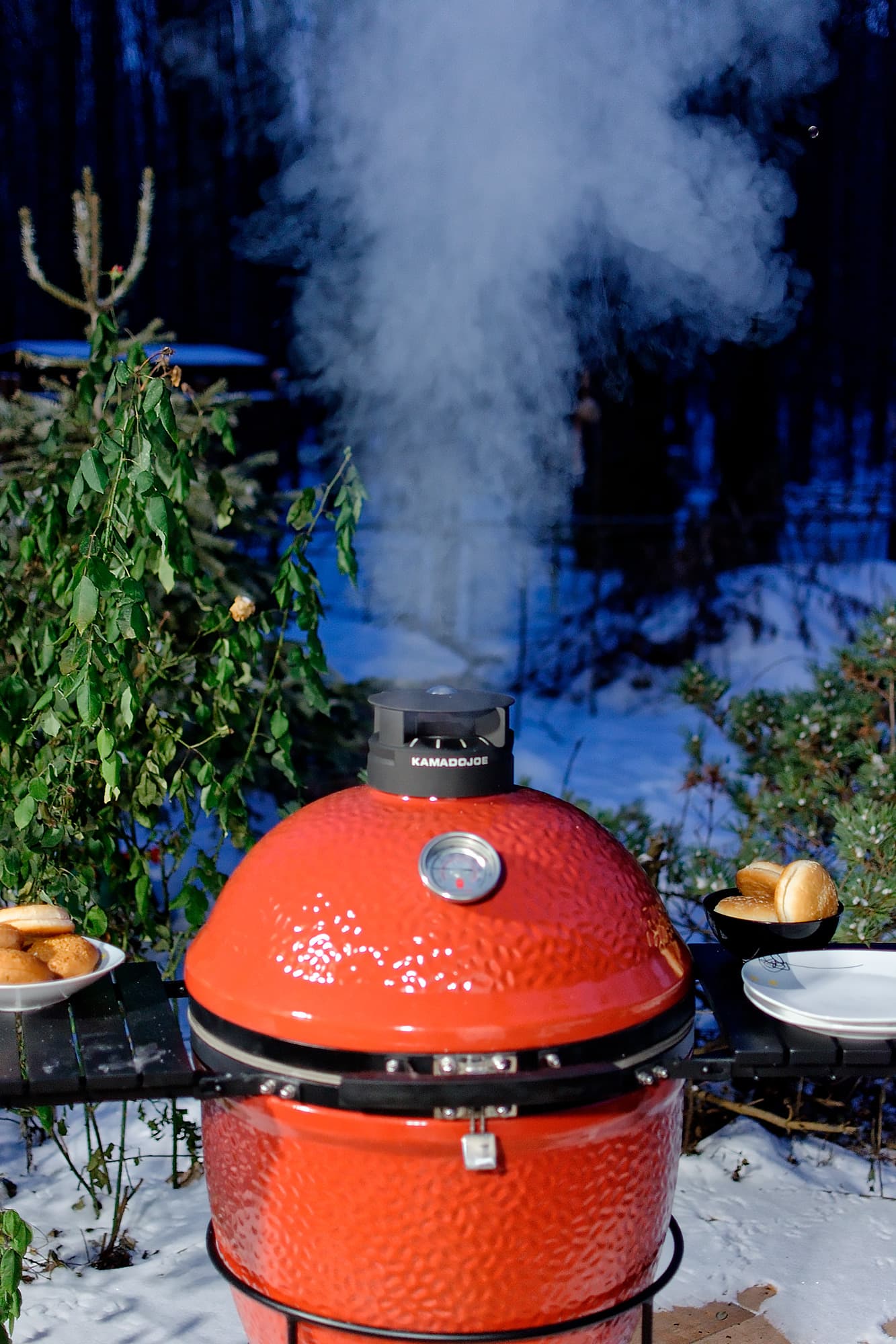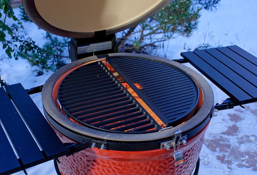 Но вспомнить, как готовили на угольном гриле, например Masterbuilt Kamado MCG 300S и Kamado Joe Classic II, тоже хочется. Покажем в картинках, ибо комментарии излишни, всё и так понятно. Готовили на морозе, работать приходилось очень быстро, так как внутренний термометр гриля показывал, что тепло быстро улетучивается при каждом открывании крышки, но затем так же быстро и набирается, благодаря жарким углям, хорошей тяге на холоде и толстой керамике пластин гриля.