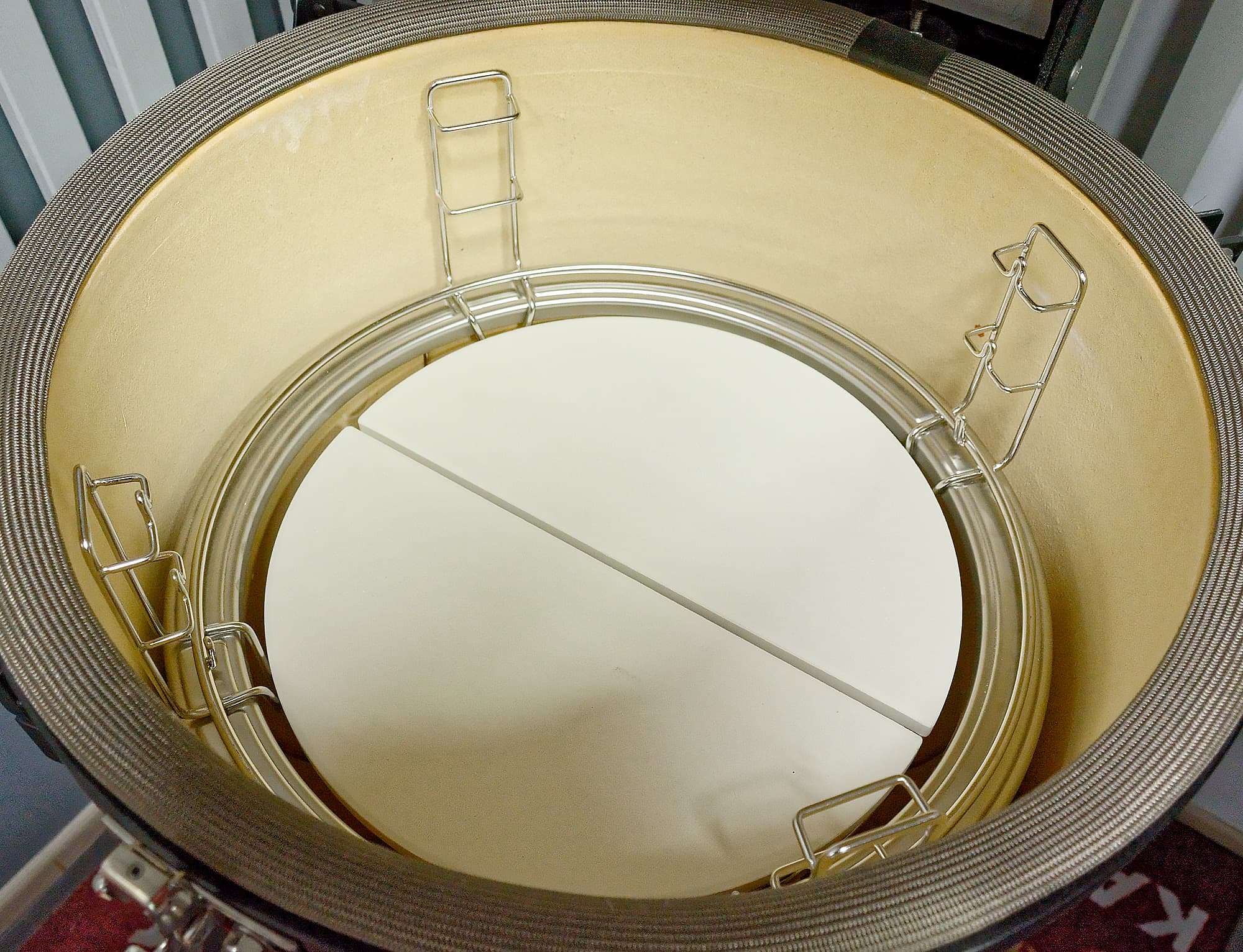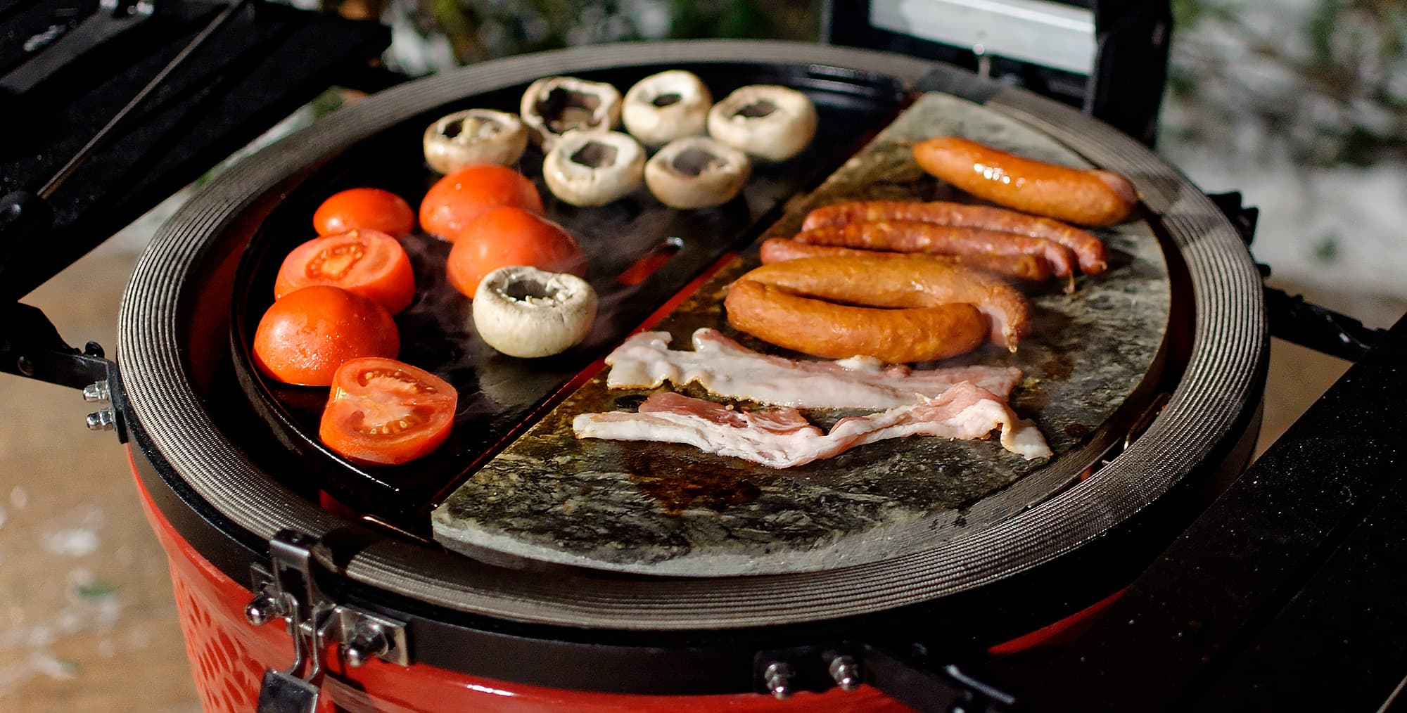 Чтобы придать тестированию дополнительную изюминку, на этот раз нас снабдили четырьмя фирменными аксессуарами Kamado Joe — дополнительными решетками для грилей с диаметром рабочей поверхности 46 см. Вот в чем польза разделенной решетки: она позволяет задействовать вместе с ней все эти аксессуары.