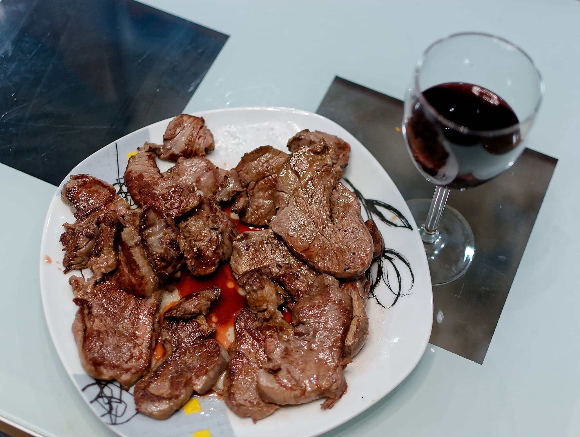 Мясо и вино.
