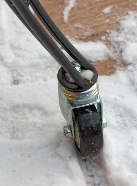 - Рычажками тормозов на передних колесах вполне комфортно оперировать ногами, но вот польза от тормозов зимой на заснеженном кафеле сильно снижается — колеса приобретают свойства полозьев санок. ;)