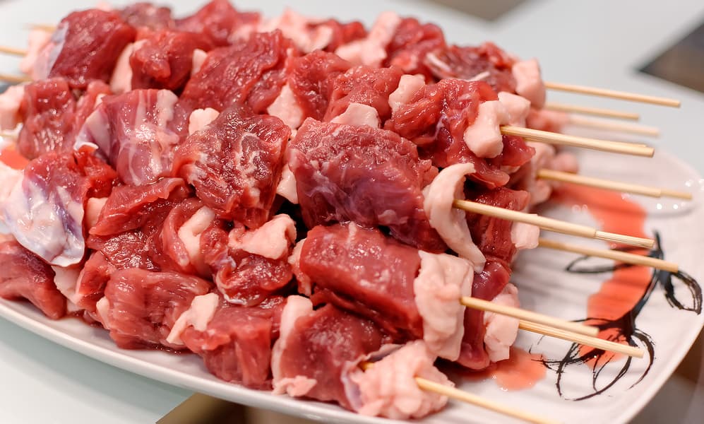- шашлыки из говядины на бамбуковых шпажках