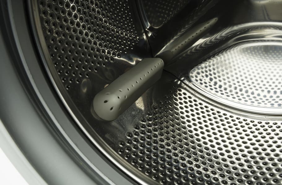 Барабан равномерно перфорирован, на его стенках нет никаких выштамповок, призванных улучшать гидродинамику, — простая сетчатая поверхность. Конструкция прямых пластиковых бойников, перемешивающих белье, также вполне стандартна.