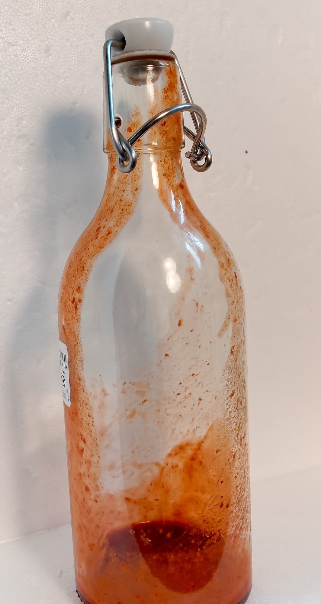 Бутылка с засохшими остатками томатного соуса