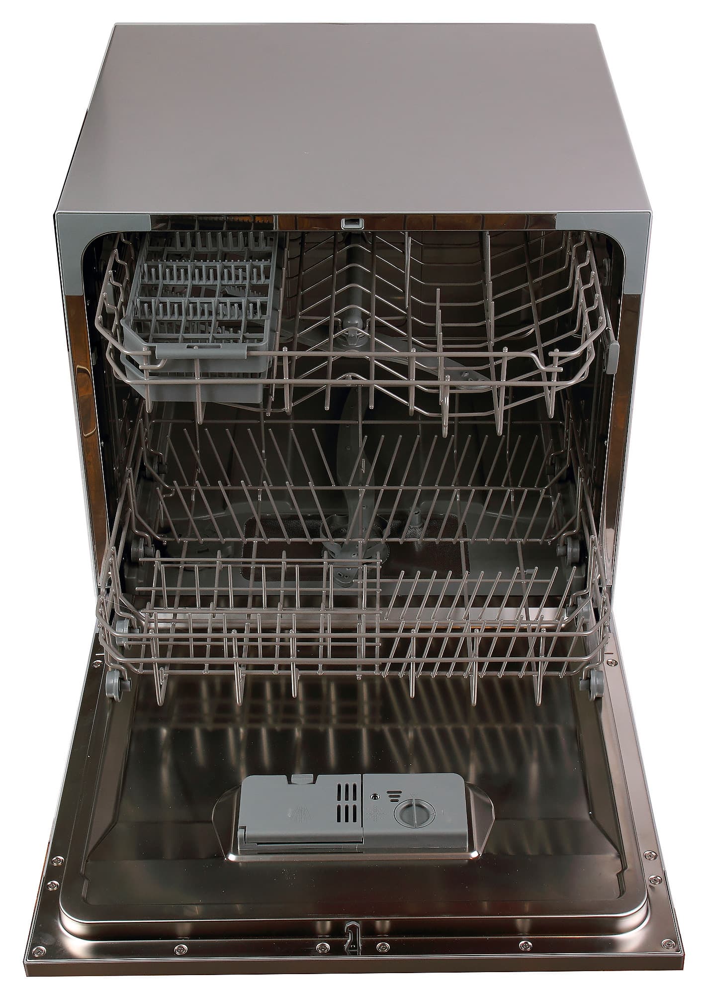 Вместимость у машины небольшая, чуть меньше нашей домашней настольной машины. Но зато, благодаря своему внутреннему устройству держателей, качество мытья у подопытной модели выше. Здравый смысл подсказывает, что человек, купивший посудомойку, предпочтет чаще ее запускать и получать стабильно хороший результат, чем наоборот.