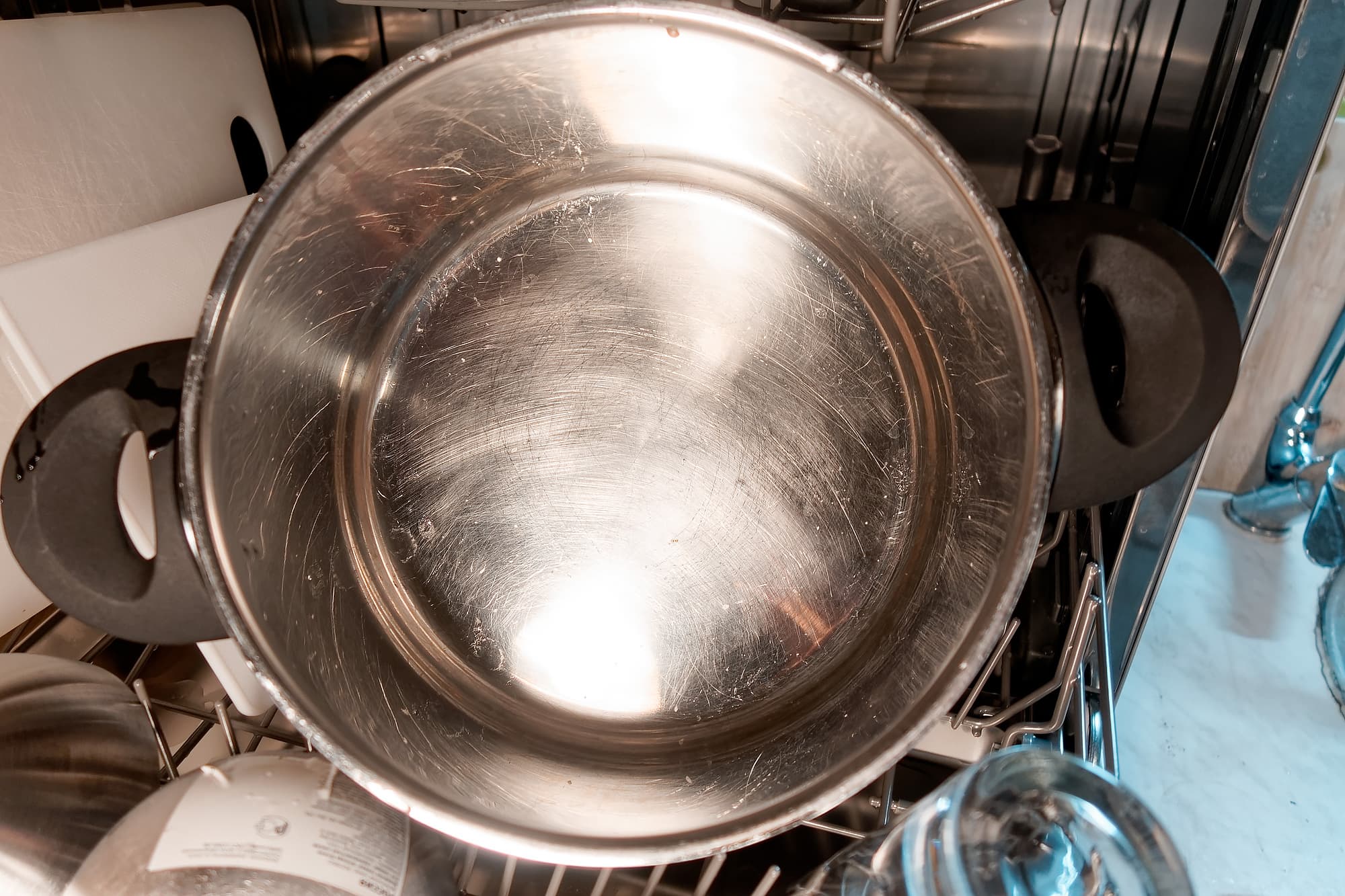 Это самый сложный тест, отмыть засохший ободок от кастрюли с супом непросто даже в посудомойке. Но мы понадеялись на сложносочиненный интенсивный режим — и он нас не подвел.