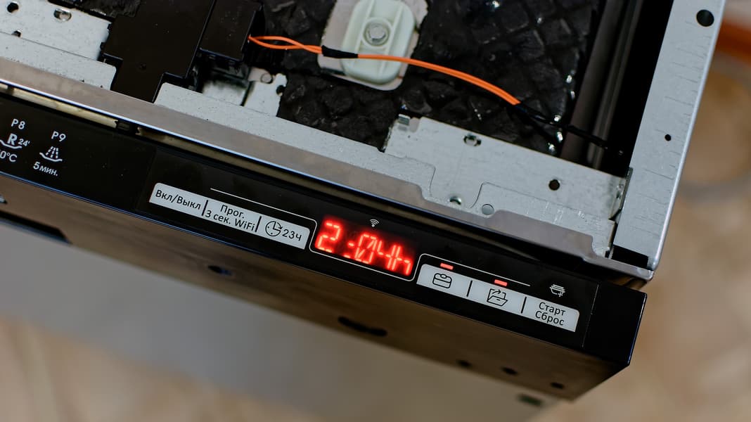 Самый, пожалуй, актуальный вариант — зайти в меню работающей посудомойки и посмотреть, на каком этапе находится мойка и сколько времени осталось до ее окончания.