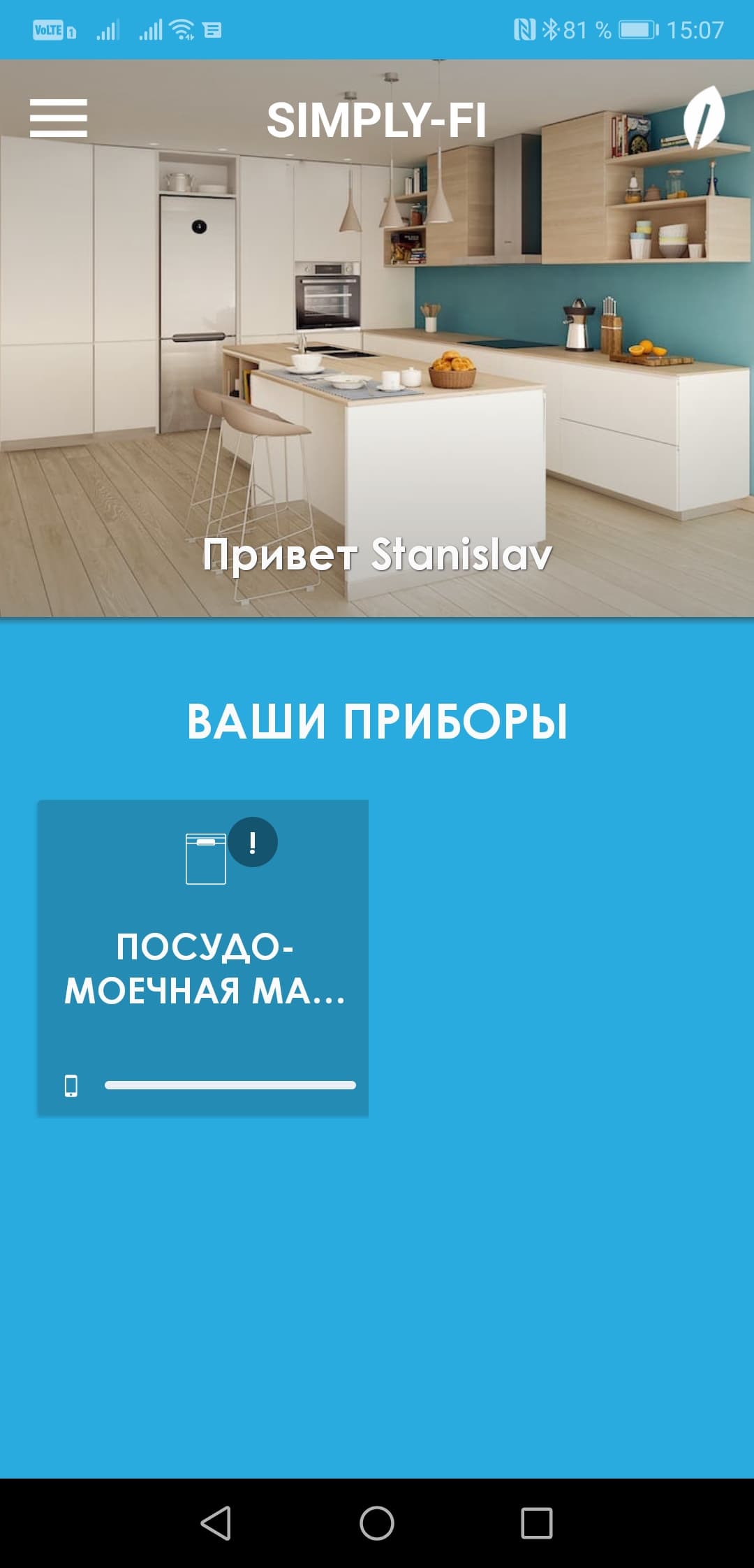 Также (если приложение SimplyFi запущено и вход в меню управления устройством произведен) на смартфон приходит уведомление обо окончании мойки.