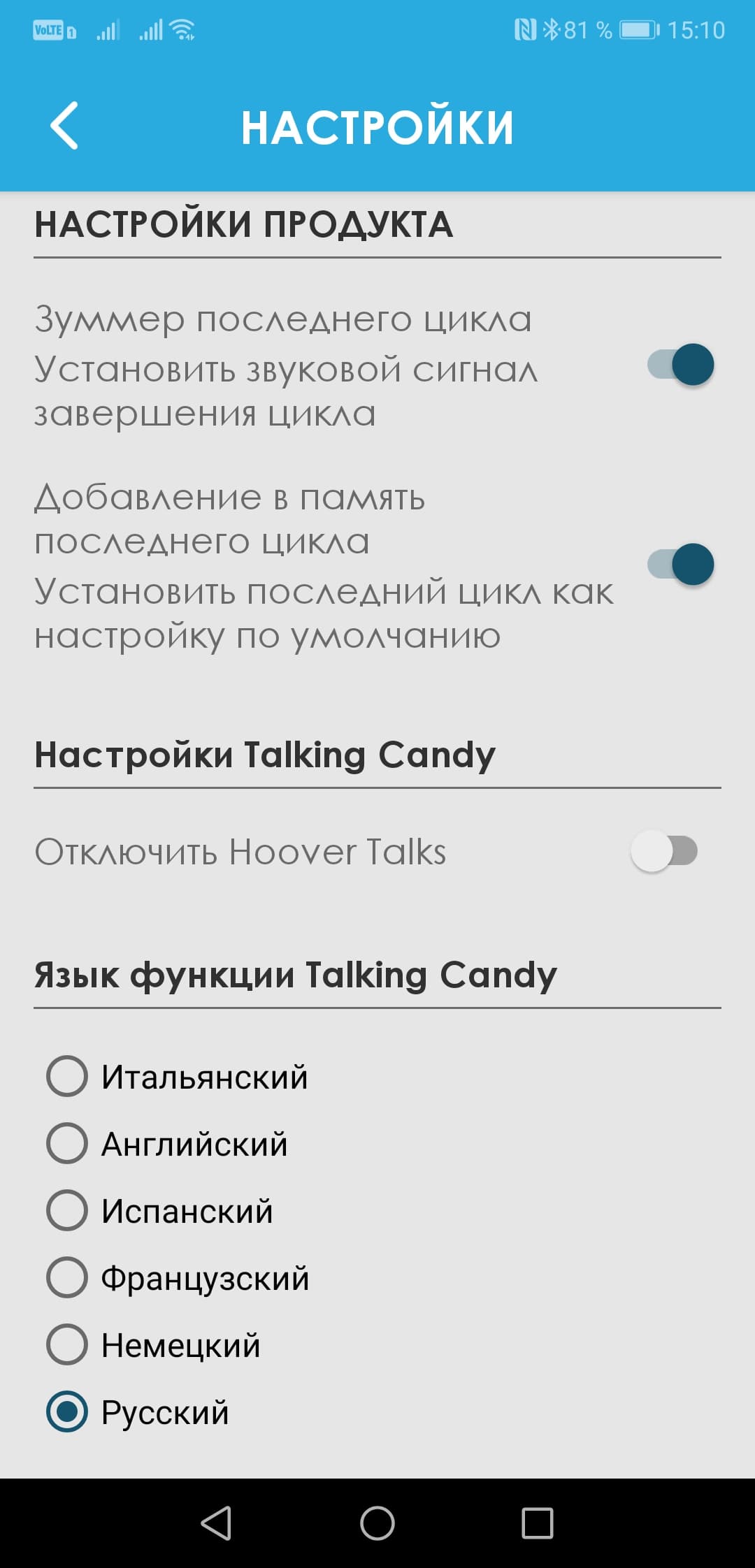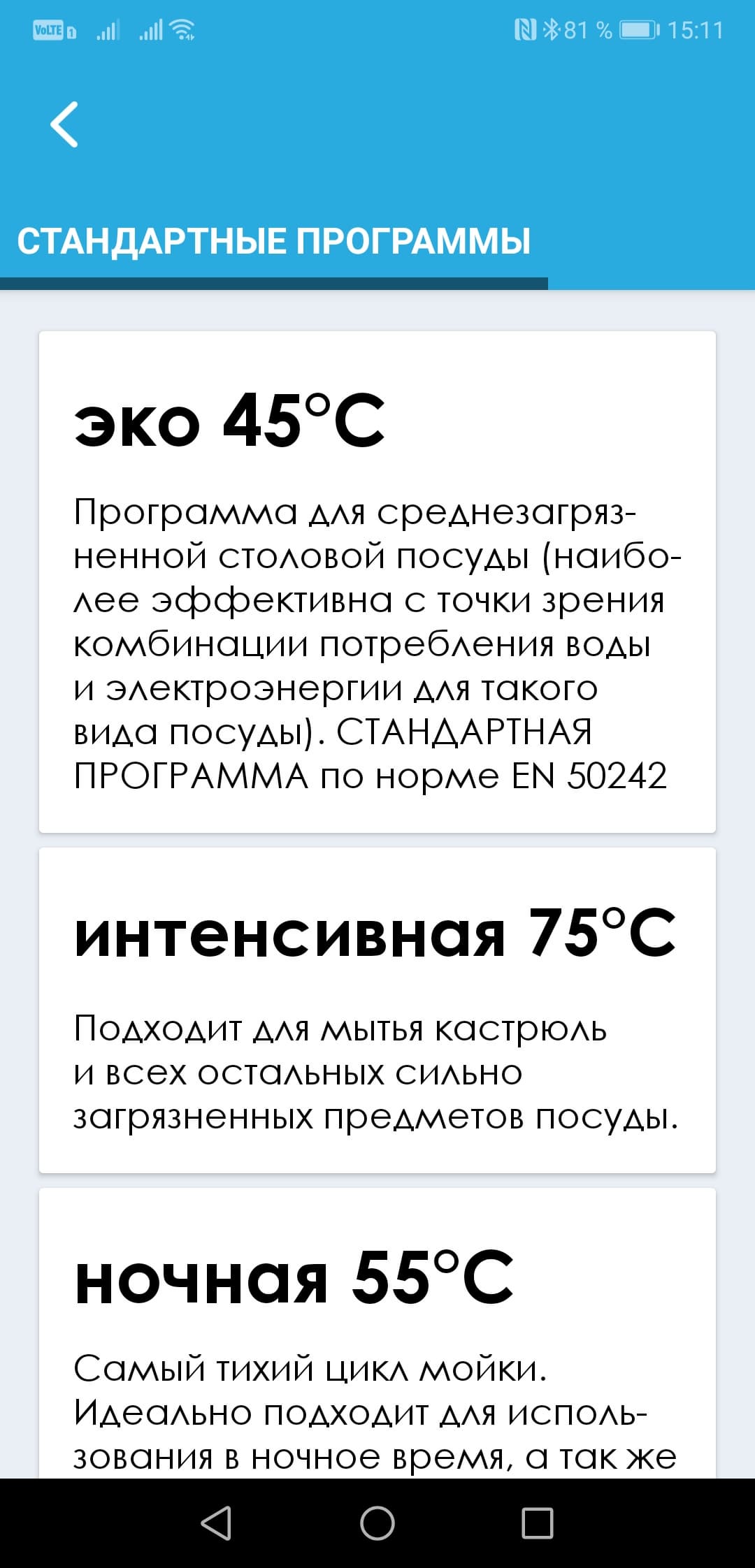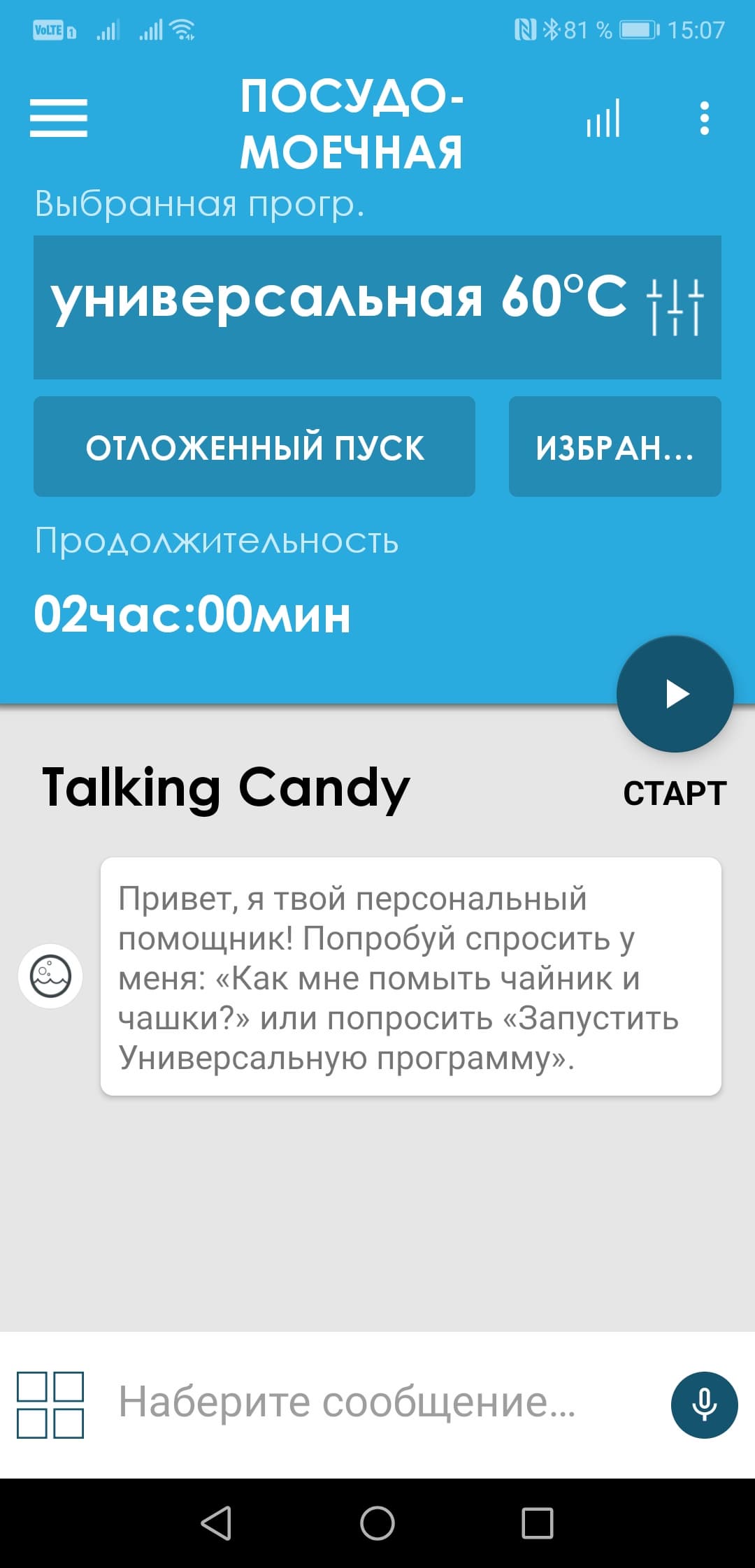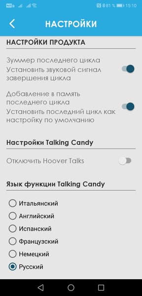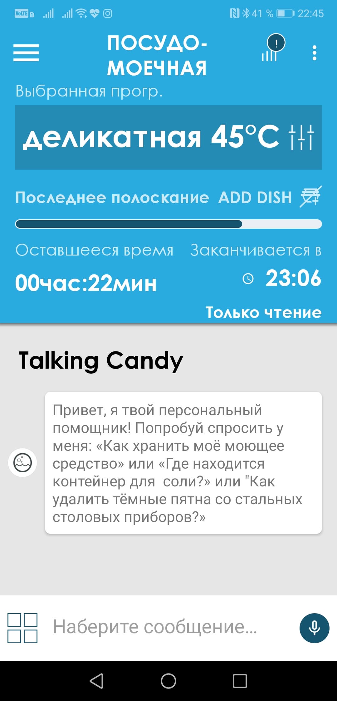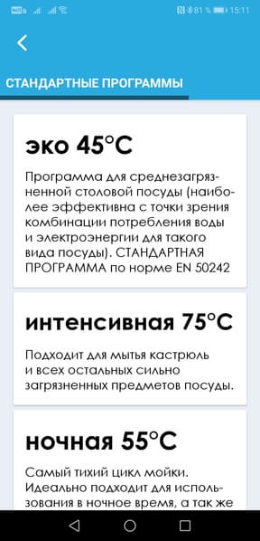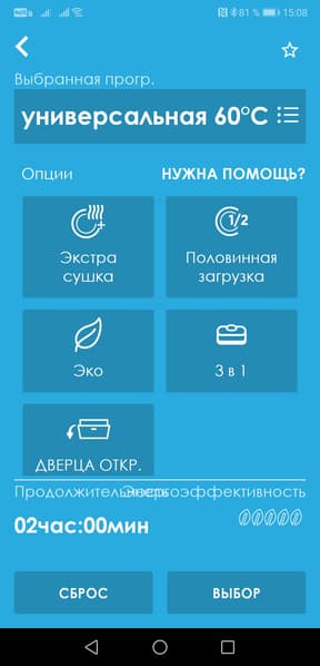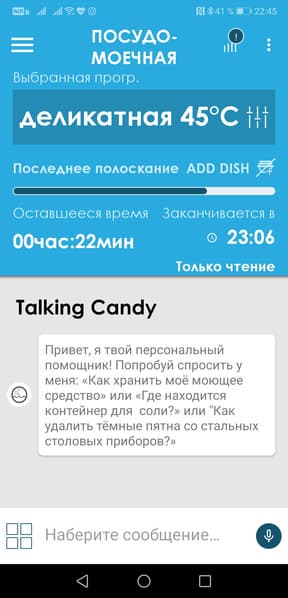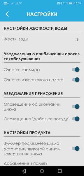 ...И настроить опции самой посудомойки и приложения.
