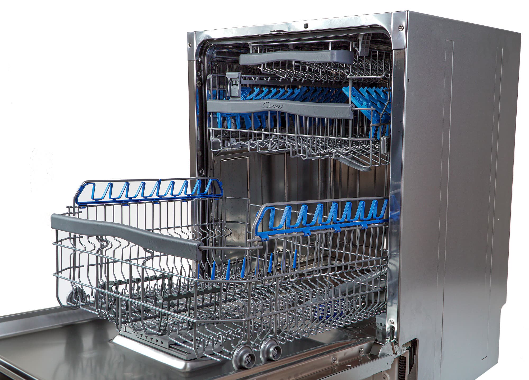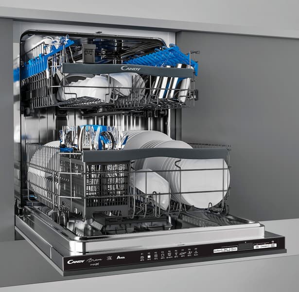 В модели CDIN 3D632PB-07 Candy решила совместить достоинства двух компоновок — классической и современной: здесь три корзины, но и корзинкой для столовых приборов эта посудомойка тоже укомплектована. Таким образом, любители «олдскула» могут задействовать привычную схему, а поклонники новизны — просто не использовать корзинку для приборов.
