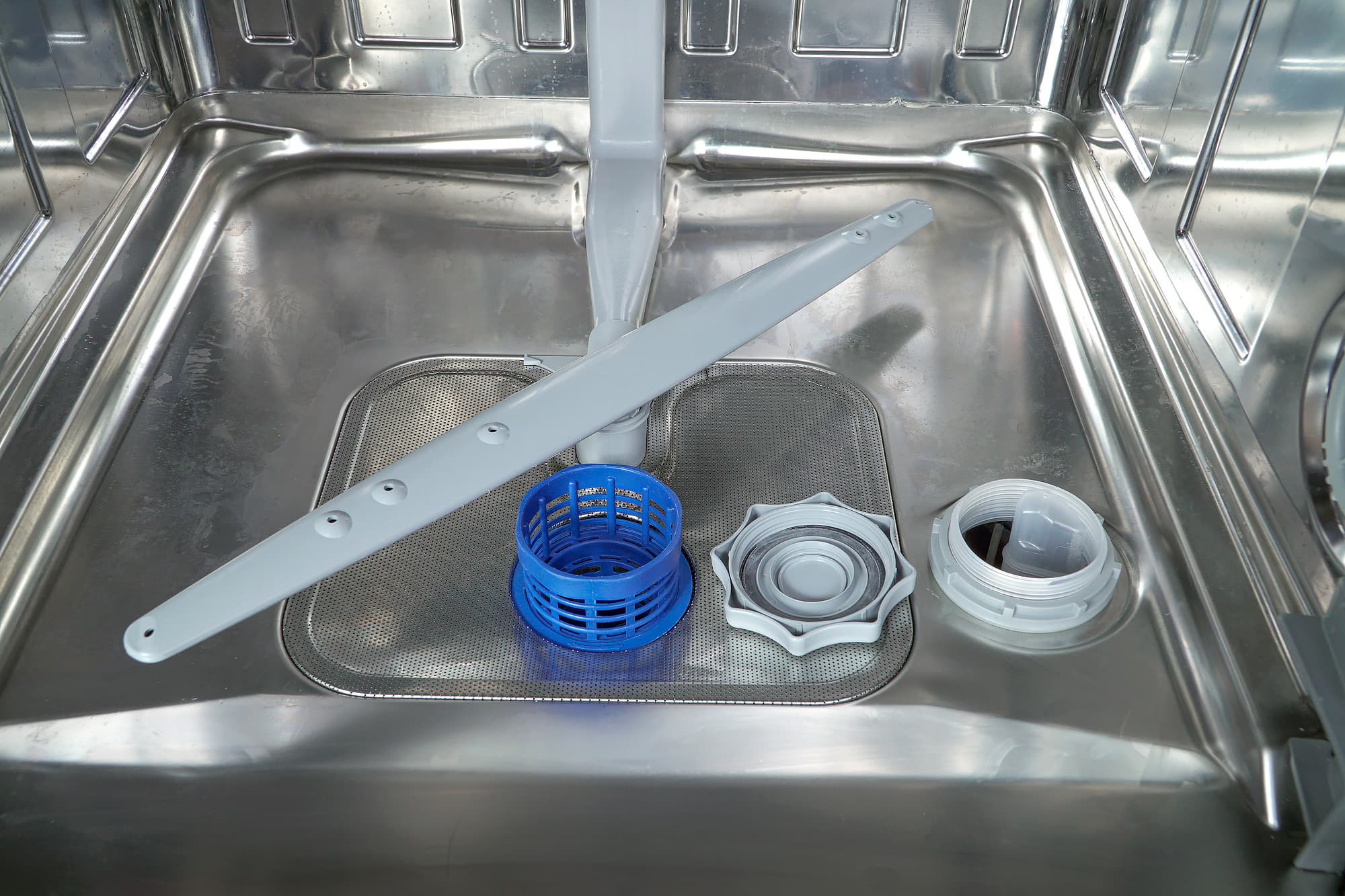 Также рекомендуется регулярно осматривать лопасти для разбрызгивания воды: если вода в водопроводе жесткая, со временем отверстия для разбрызгивания воды в них могут забиться. Тогда рекомендуется их снять (эта процедура описана в руководстве пользователя) и промыть от грязи и отложений под струей воды.