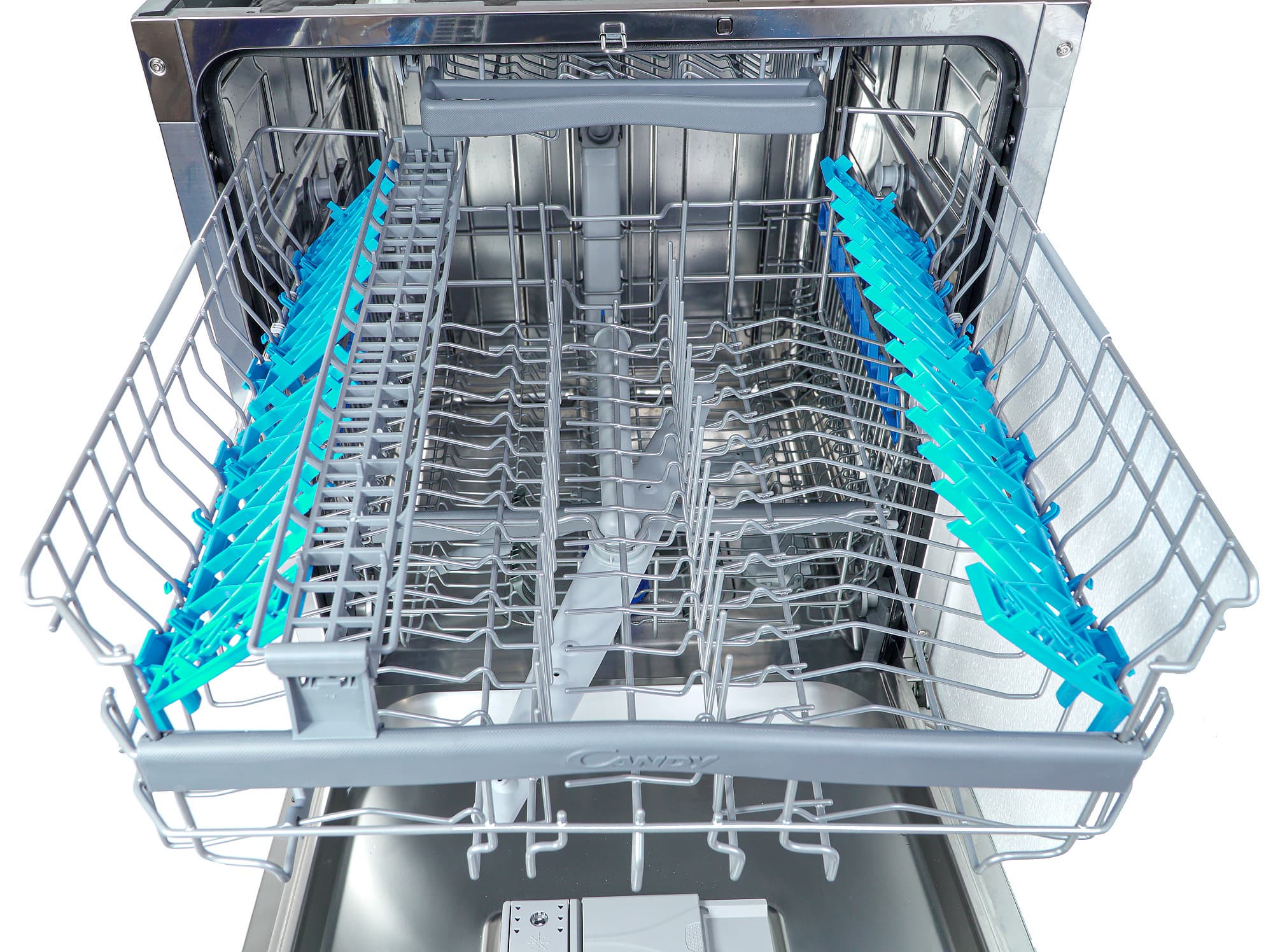 Верхнего распылителя у Candy CDIN 3D632PB-07 нет (хотя судя по наличию характерной круглой выштамповки на соответствующем месте, модели с верхним распылителем в этом корпусе выпускаются, или планируются к выпуску).