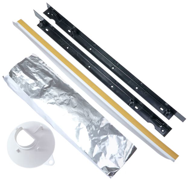 Серая накладка (на нашем фото слева), устанавливаемая на корзину сверху, по задумке производителя предназначена для вертикальной инсталляции столовых приборов, однако здесь у нас возникли проблемы: отверстия в ней для наших стандартных ложек, вилок и столовых ножей, оказались чересчур малы. Зато эта небольшая длинная площадка идеально подходит для какого-нибудь сурового шеф-поварского тесака, решили мы :)