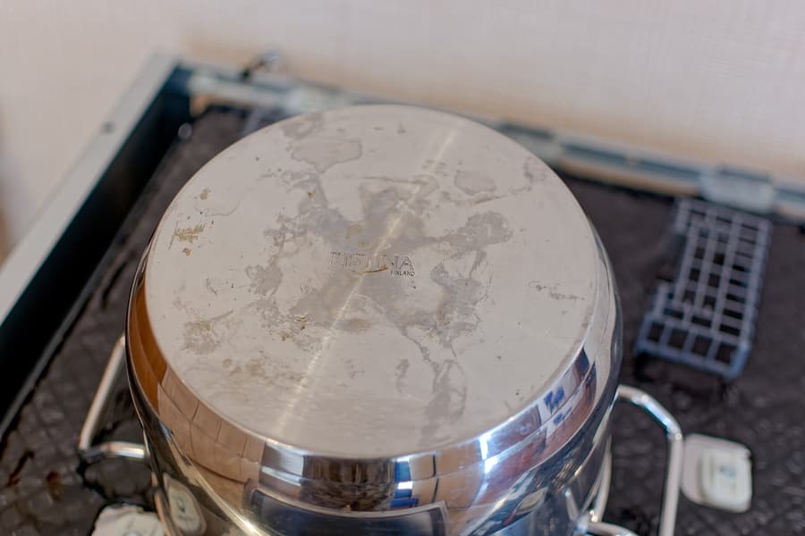 и кастрюля, в которой варили куриный бульон, перед этим довольно долгое время лишенная счастья мытья в посудомойке, так что кроме свежих загрязнений присутствовали еще и застарелые артефакты: