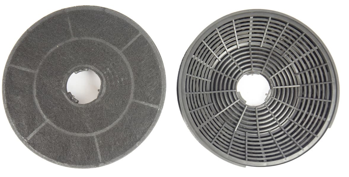 Внутри мы обнаружили два дисковых фильтра из темного пластика. Элементы СF701 состоят из двух слоев: роль первичного фильтра, задерживающего пыль, жир и копоть, выполняет нетканый материал; под ним находится активированный уголь, предназначенный для очистки воздуха от неприятных запахов.