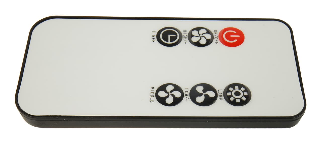 Кнопки на пульте совпадают с сенсорами на панели управления: с него можно управлять подсветкой и выбирать нужный уровень мощности.