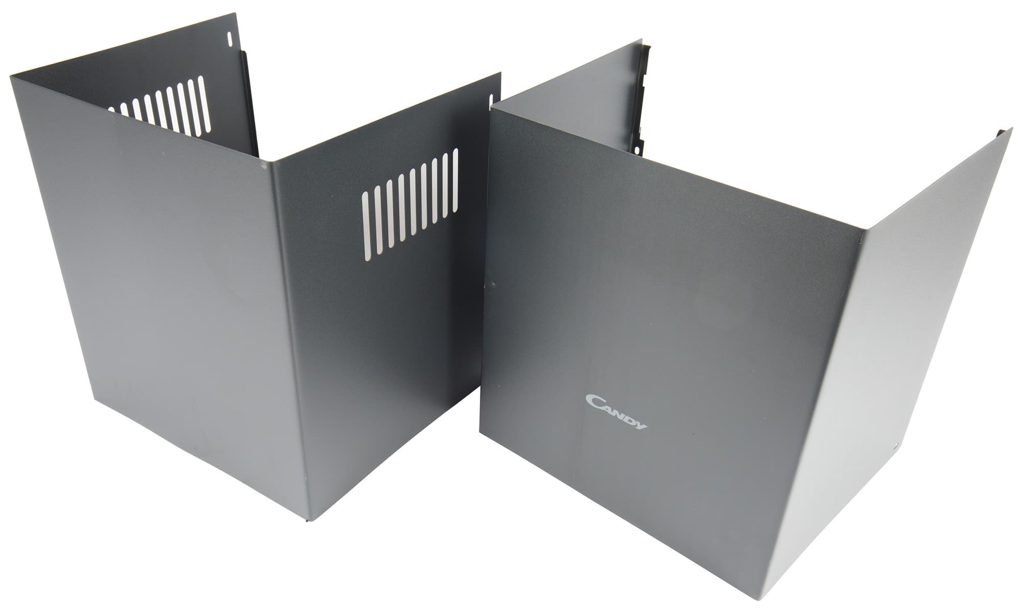 Раздвижной декоративный кожух состоит из двух элементов: нижнего, с логотипом производителя, и верхнего, с вентиляционными отверстиями на боковых сторонах.