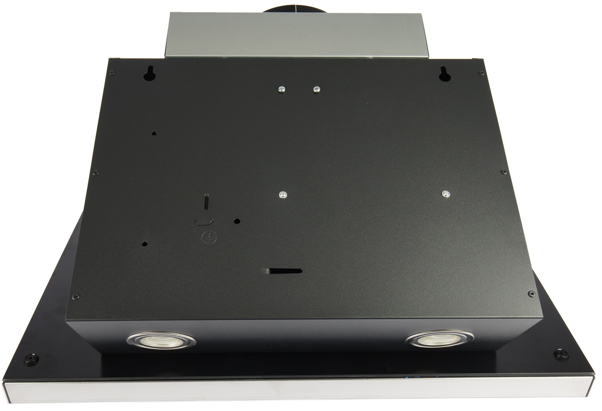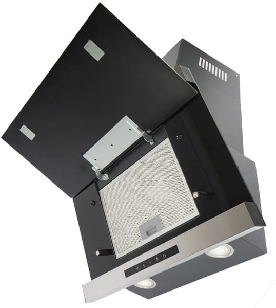 Наклонная кухонная вытяжка Candy CDP620GBXG-07 наиболее популярной для приборов такого рода ширины — 60 сантиметров. Разрабатывая эту модель, дизайнеры взяли за основу черный цвет с добавками серебристого.