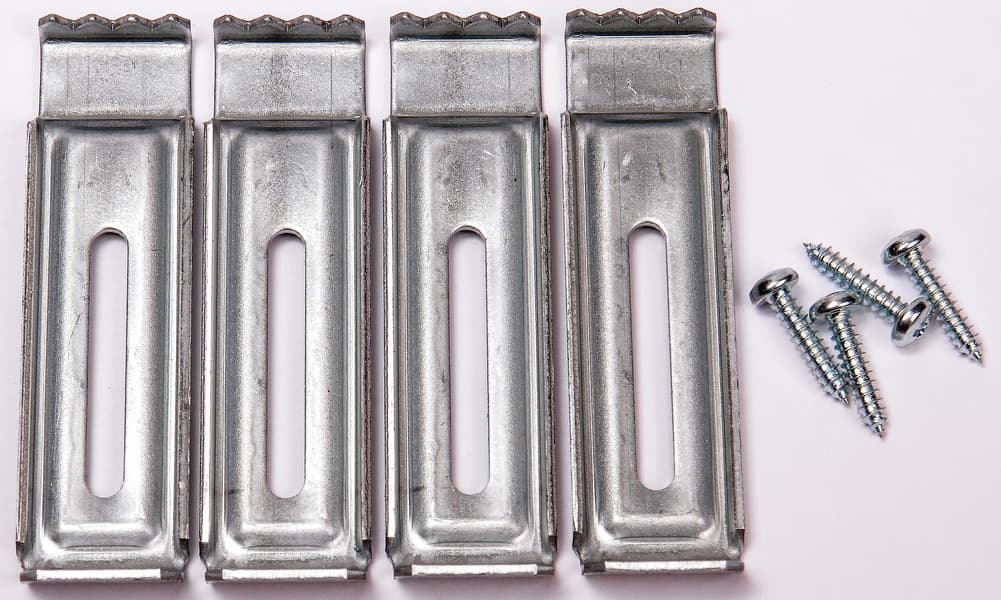 - комплект из четырех скоб и четырех саморезов;