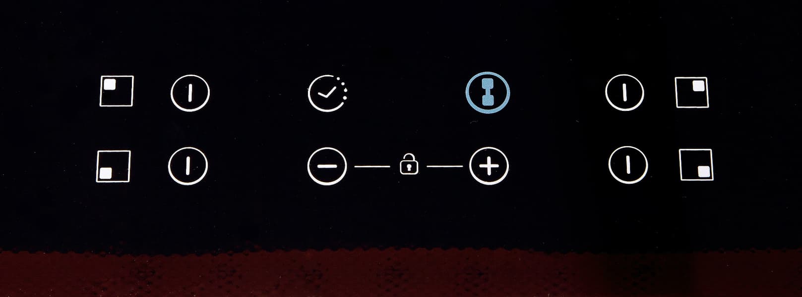 Рядом с иконками, обозначающими конфорки (это просто картинки, кнопками они не являются), расположены кнопки включения/выключения. При длительном нажатии они включают или выключают конфорку, при коротком — служат для ее выбора. Кнопки «+» и «−» регулируют уровень нагрева у текущей выбранной конфорки (0...9 и «P» вместо 10). Если выбрать 0 — конфорка через несколько секунд выключится.