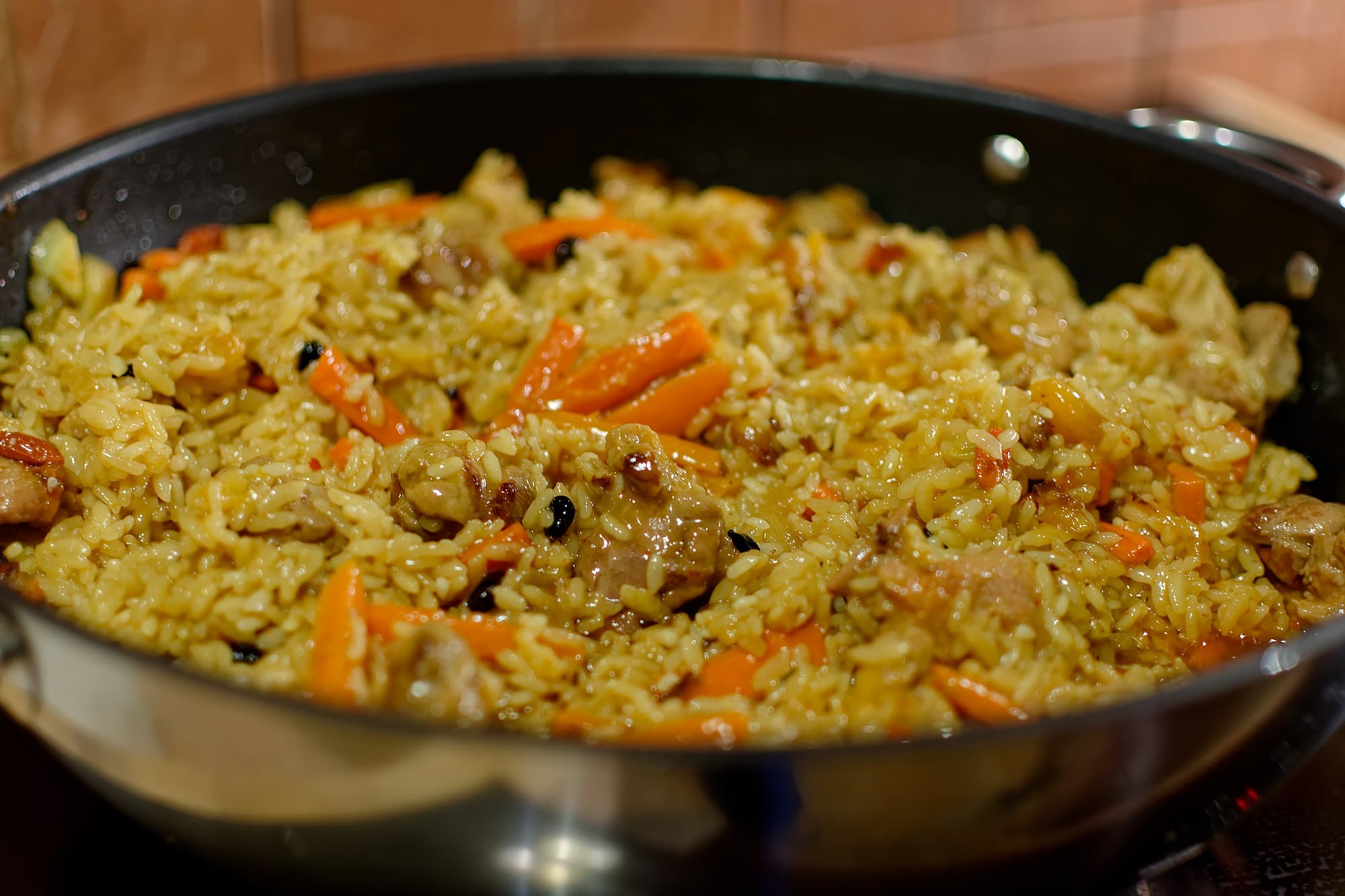 Тут мы замахнулись на святое: все знают, что невозможно на электроплите без индукции сделать плов. Ну, может, получится? Мы решили попробовать. Для облегчения процесса решили, что плов будет из утки и приготовим мы его в удобном для наших целей воке.