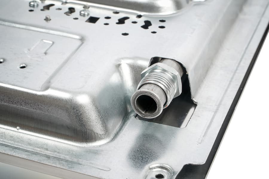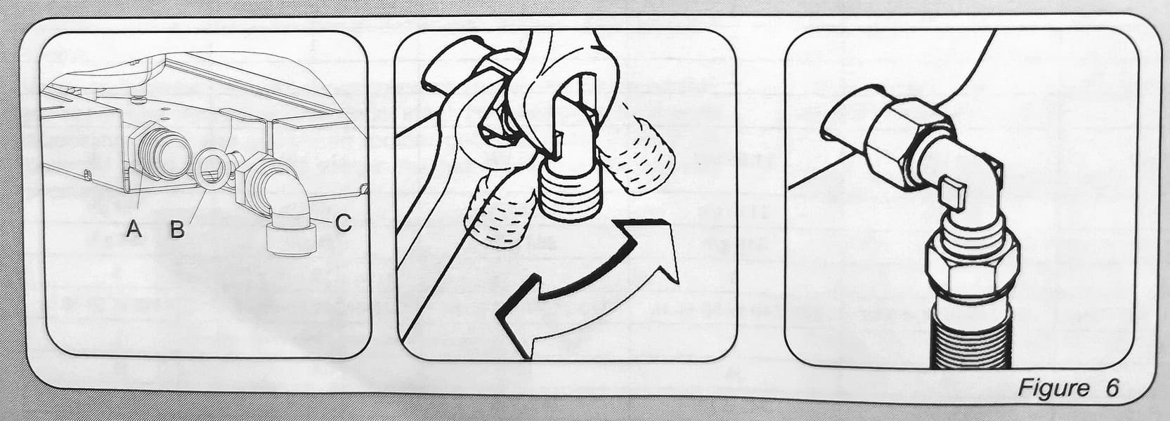 Подключение к газу возможно напрямую к гибкому шлангу через резьбовое соединение или с использованием углового штуцерного переходника.