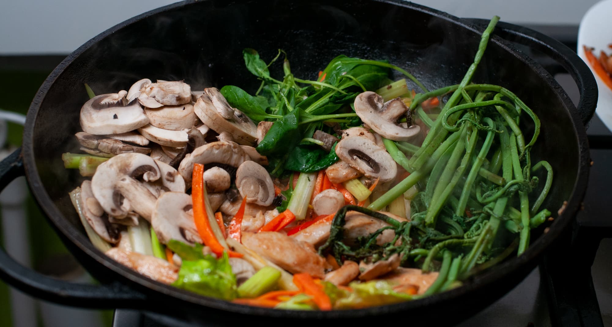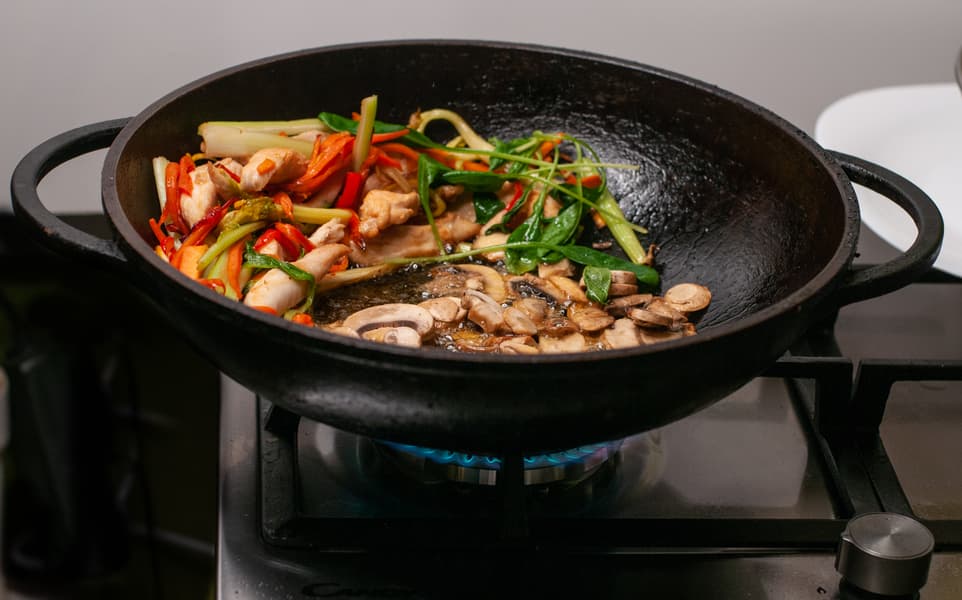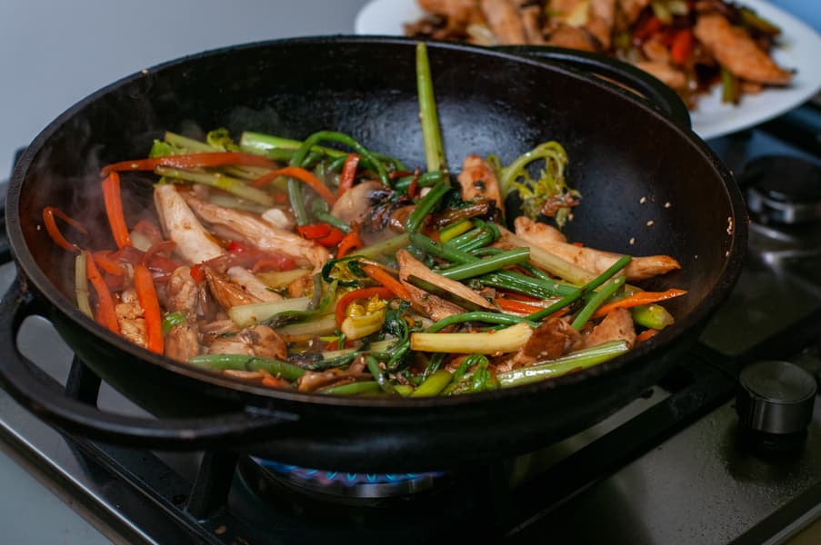 Мы решили испытать, хватит ли мощности большой конфорки для приготовления курицы с овощами-вок.