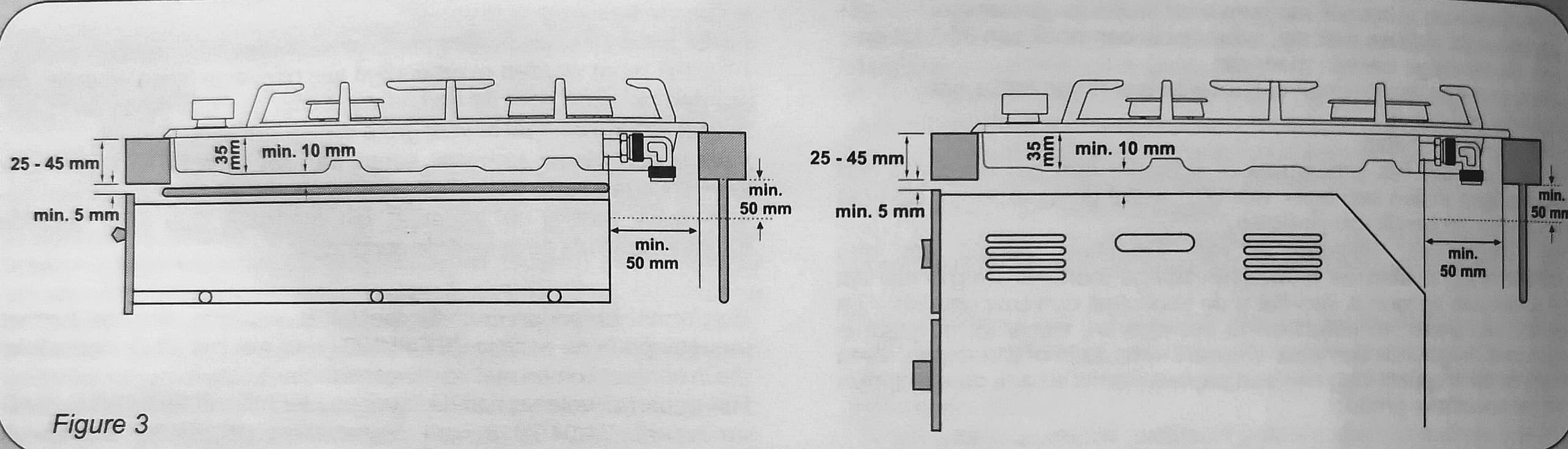 Отступ от стены должен быть не менее 70 мм. Расстояние до вытяжки или другой горизонтальной поверхности над плитой — не менее 70 см.