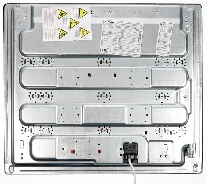 На обратной стороне панели находятся наклейки с технической информацией, технологические просечки и выход электрического шнура.