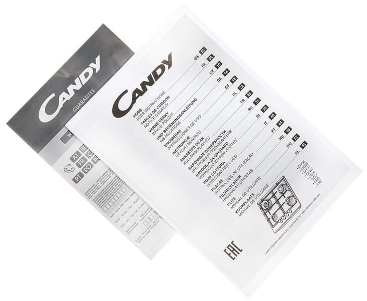 Руководство пользователя — брошюра альбомного формата на 14 языках. Текст на русском языке уместился на 5 страницах и содержит информацию, общую сразу для нескольких моделей плит. Страницу занимает техника безопасности, еще страницу инструкция по выполнению установки, выбору места установки, подключению к электросети и линии газоснабжения. Остальные разделы руководства — это инструкция по эксплуатации варочной поверхности, использование газовой конфорки, регулировка минимального пламени, обслуживание и чистка, защита окружающей среды и общая таблица характеристик 6 моделей плит данной линейки.