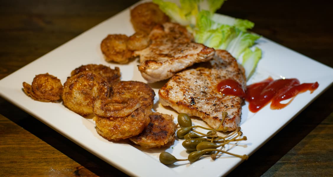 - стейка из индейки с луковыми кольцами