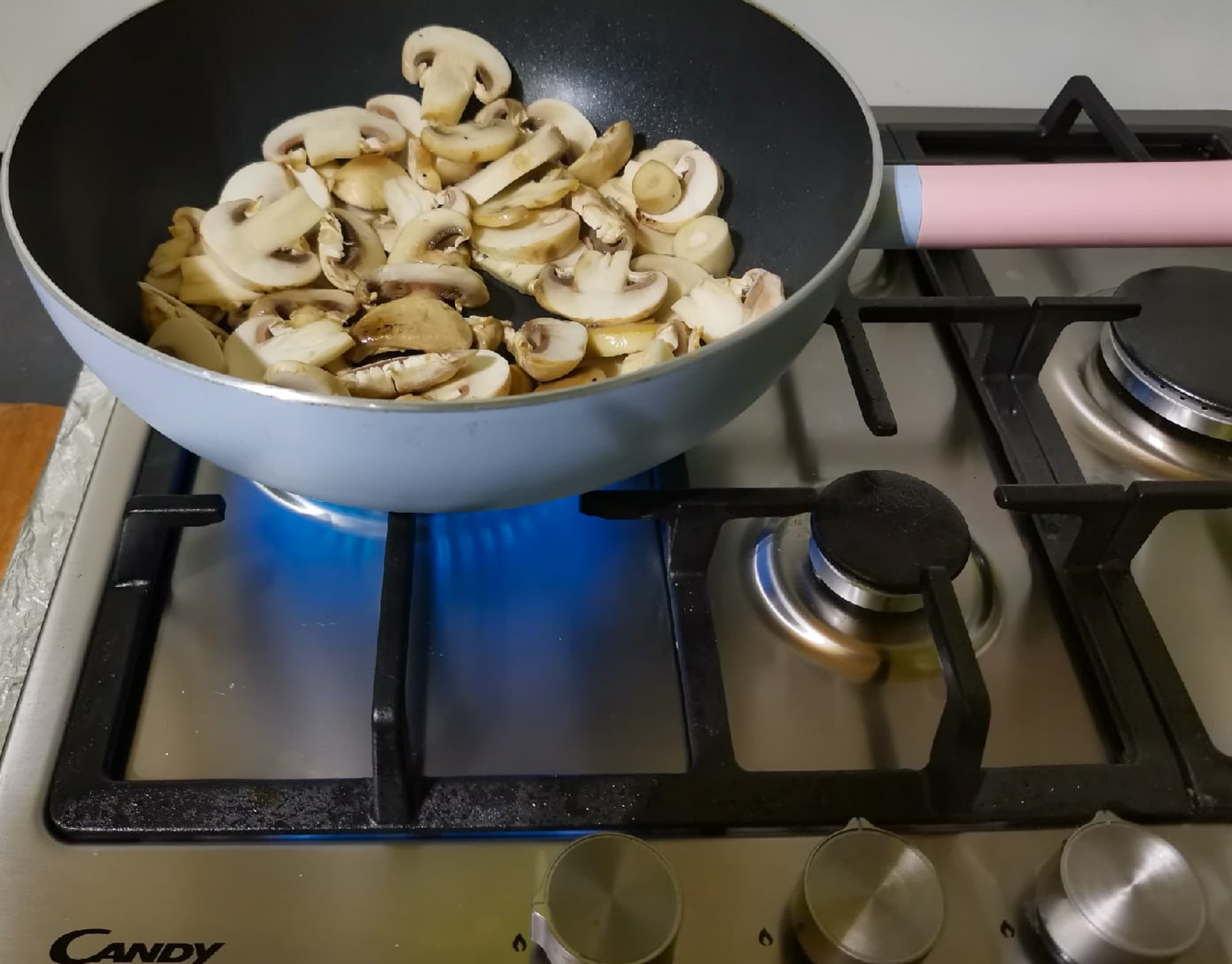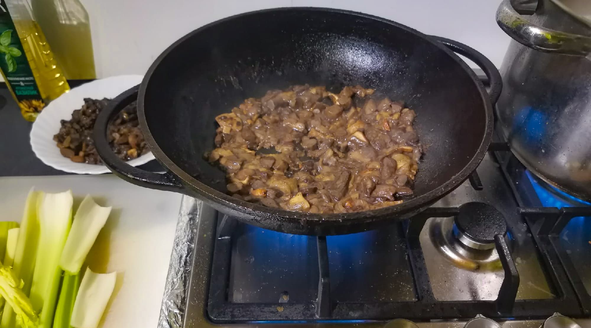 Грибы порезали крупными кусками, готовили на максимальном огне с небольшим количеством масла.