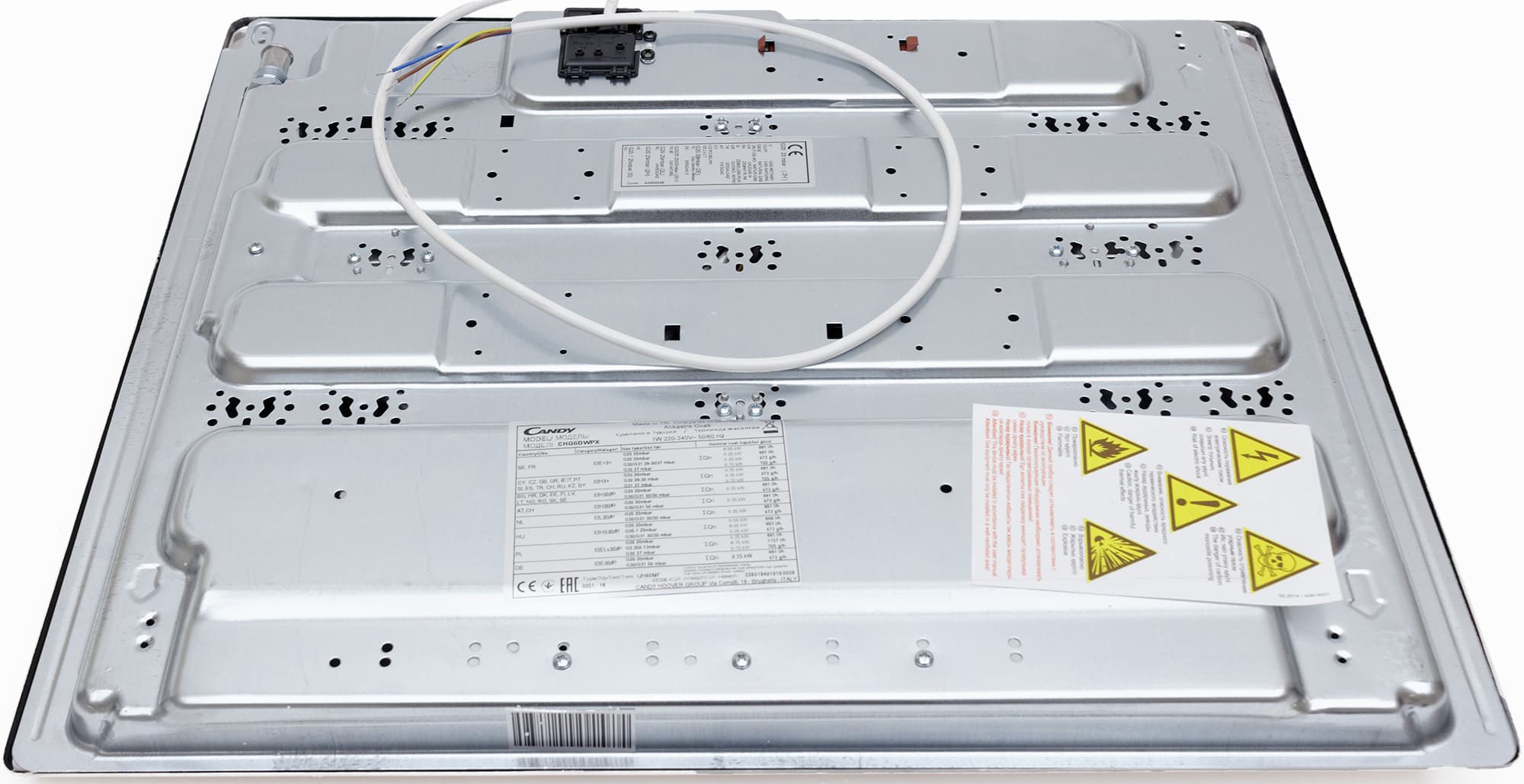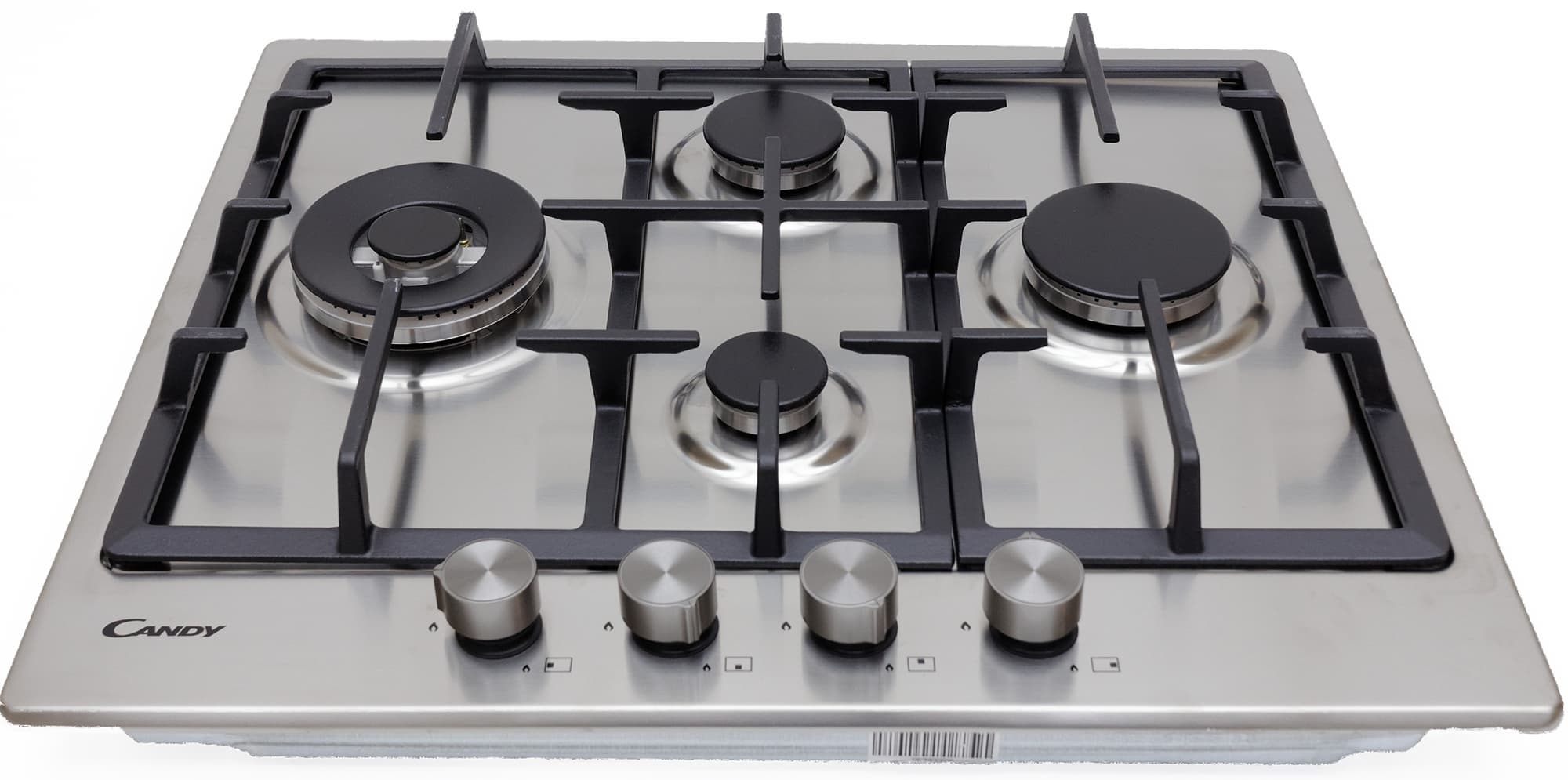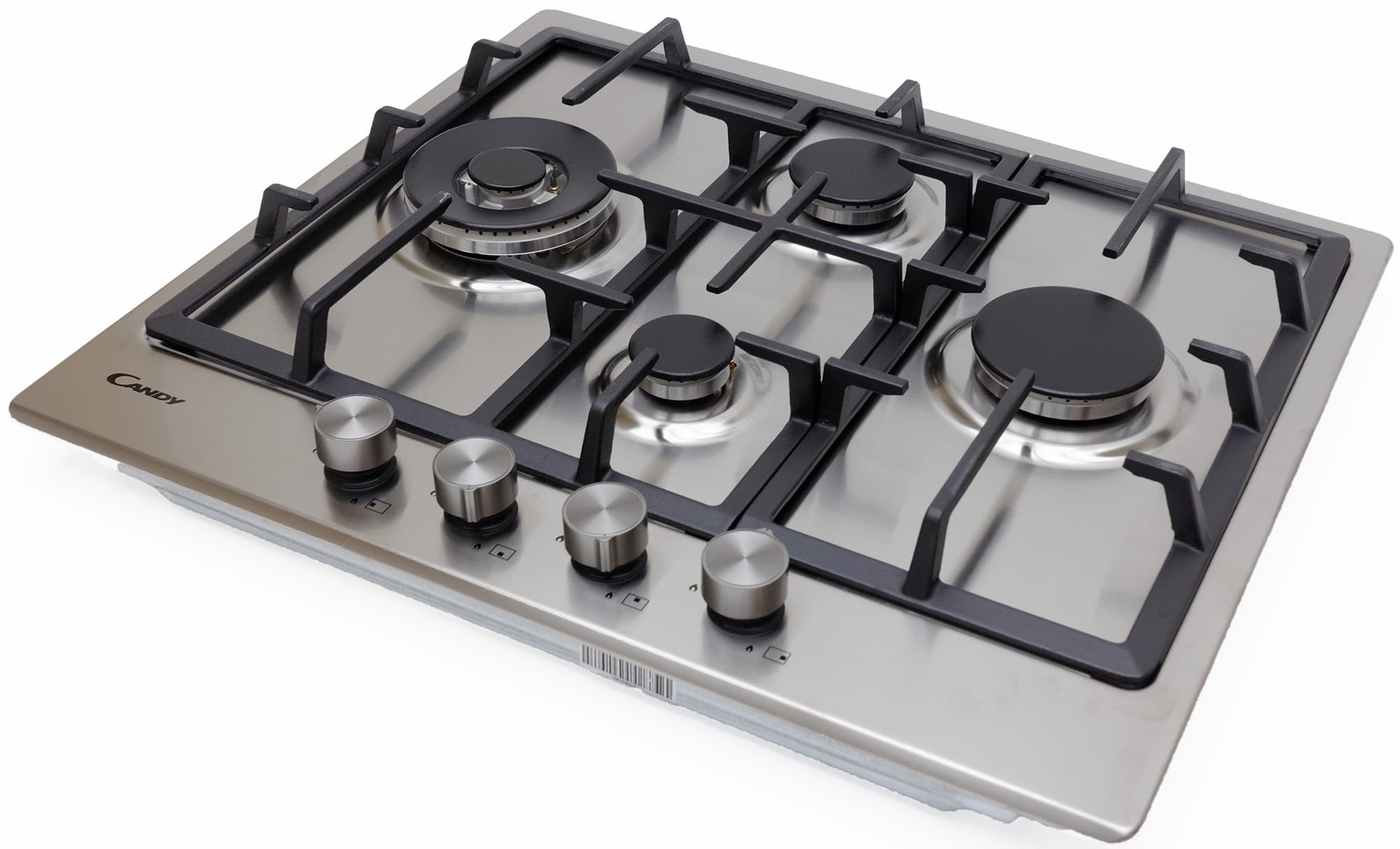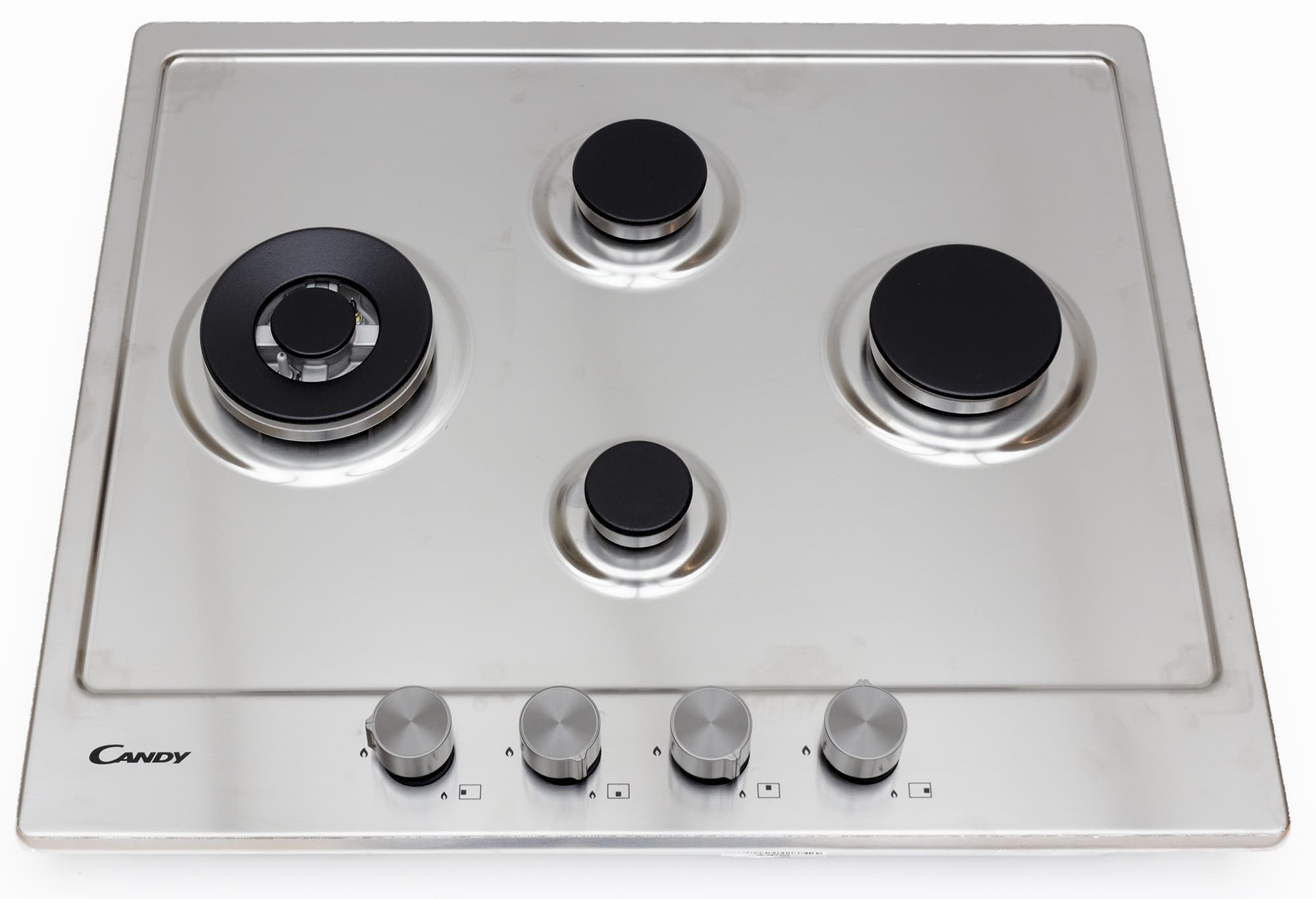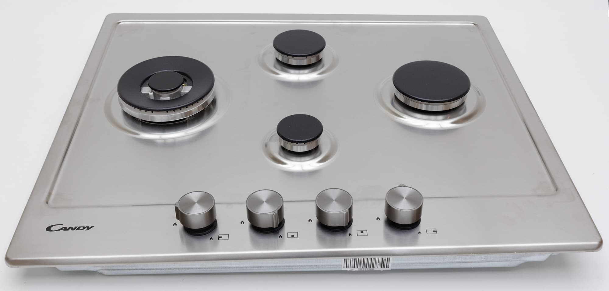 Candy CHG6DWPN — независимая варочная поверхность из нержавеющей стали с чугунными решетками. Совсем недавно мы тестировали похожую варочную поверхность Candy, визуально отличающуюся в основном расположением конфорок. Даже инструкция у этих моделей одна и та же. Словом, мы приблизительно представляем, что́ нас ждет, но с особым интересом хочется разобраться, имеет ли большое значение именно расположение конфорок на поверхности при абсолютной идентичности их технических характеристик.