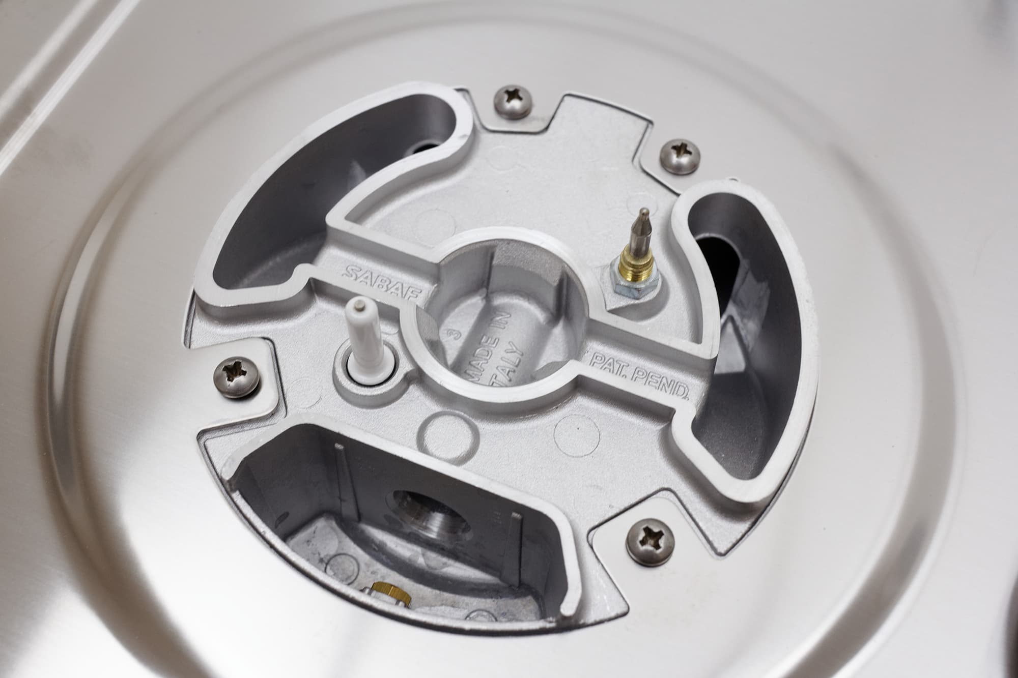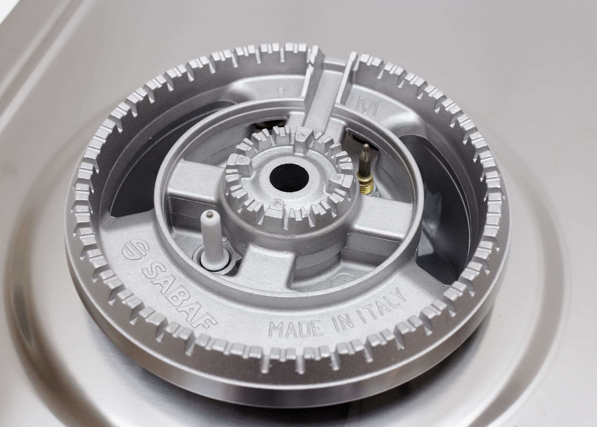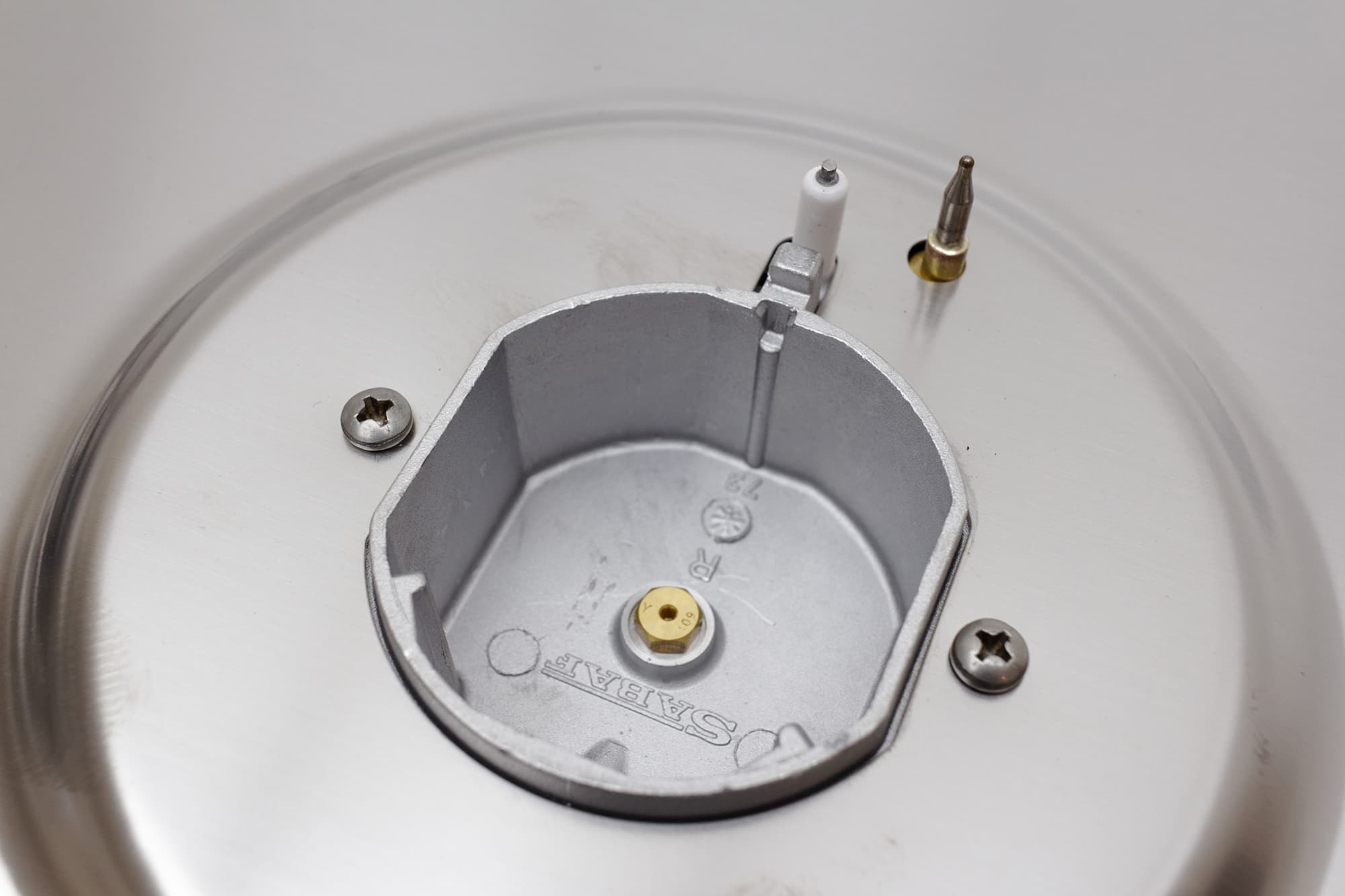 Под рассекателем пламени мы видим штыри электроподжига и газ-контроля.