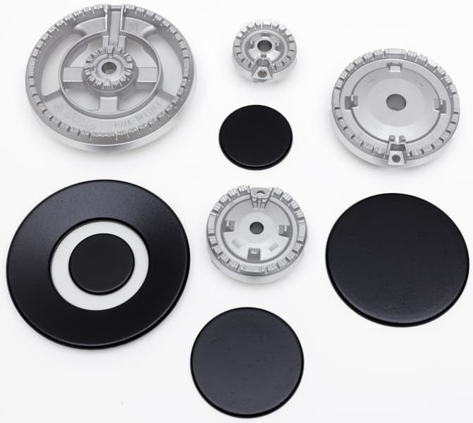 Рассекатели конфорок силуминовые, крышки стальные.
