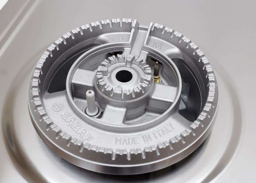 Самая большая конфорка имеет форму «двойная корона», что позволяет достигать мощности 4 кВт с большей эффективностью по сравнению с конфоркой традиционного строения.