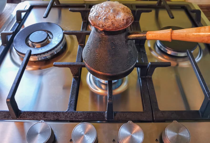 На маленькой конфорке прекрасно располагается джезва для кофе.