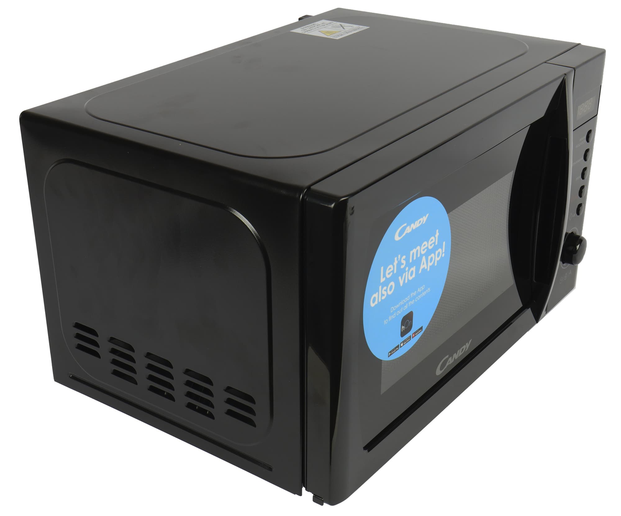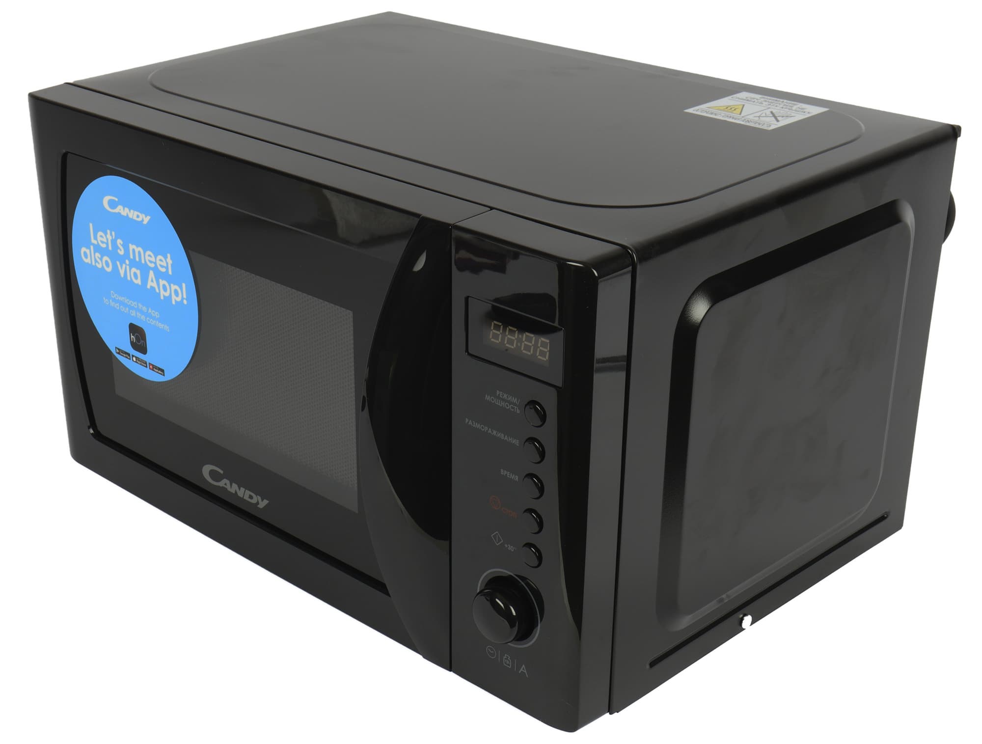 Черный корпус Candy CMGA20SDLB-07 строг и красив. Панель управления привычно расположена справа. Несмотря на то, что на дверце есть наклейка с предложением обратить внимание на фирменное приложение hOn, управления через смартфон в этой модели нет.