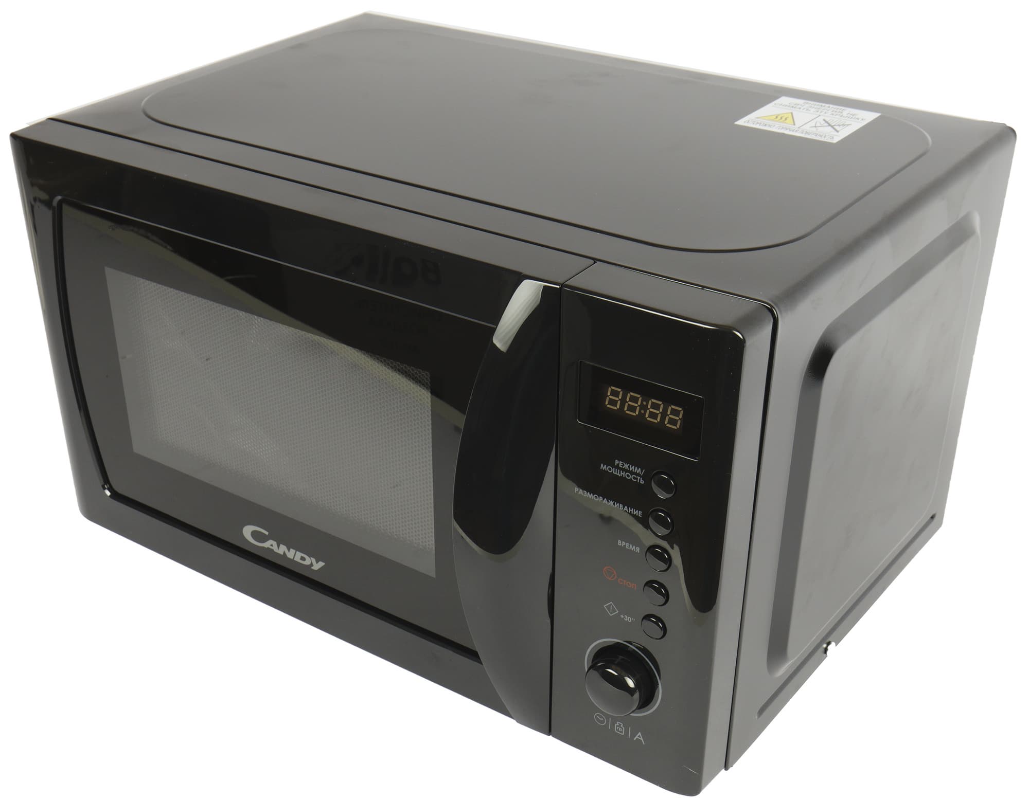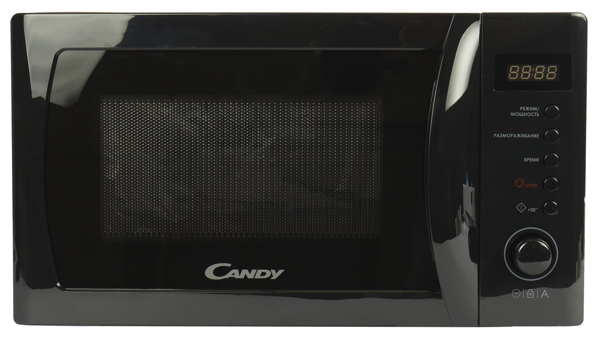 На радость противникам сенсоров, панель управления Candy CMGA20SDLB-07 состоит из механических кнопок и простой крутилки — поворотного регулятора. Над ними расположился дисплей с крупными яркими цифрами, хорошо видимыми при любом освещении.