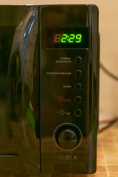 Сигналов в процессе микроволновка не издавала, поэтому через 10 минут мы сами открыли дверцу и проверили ситуацию внутри.