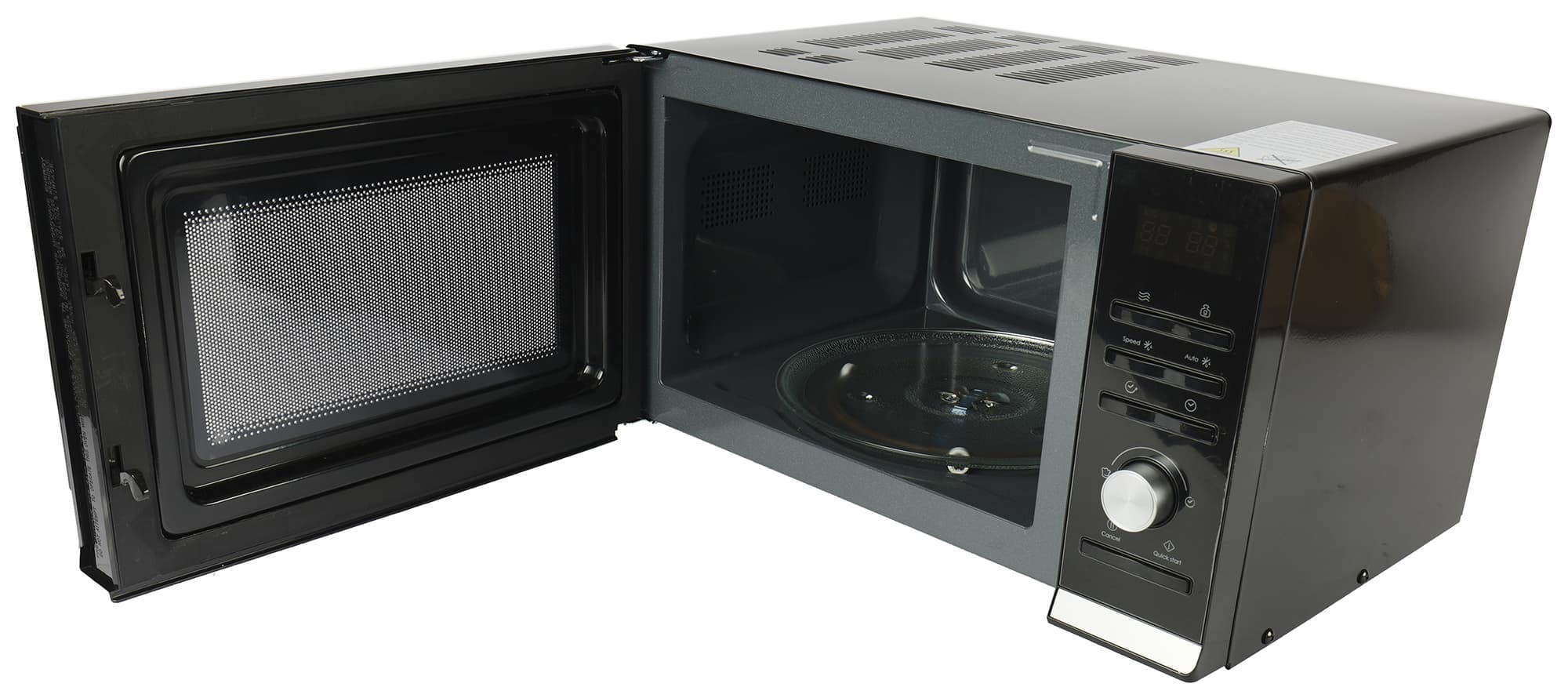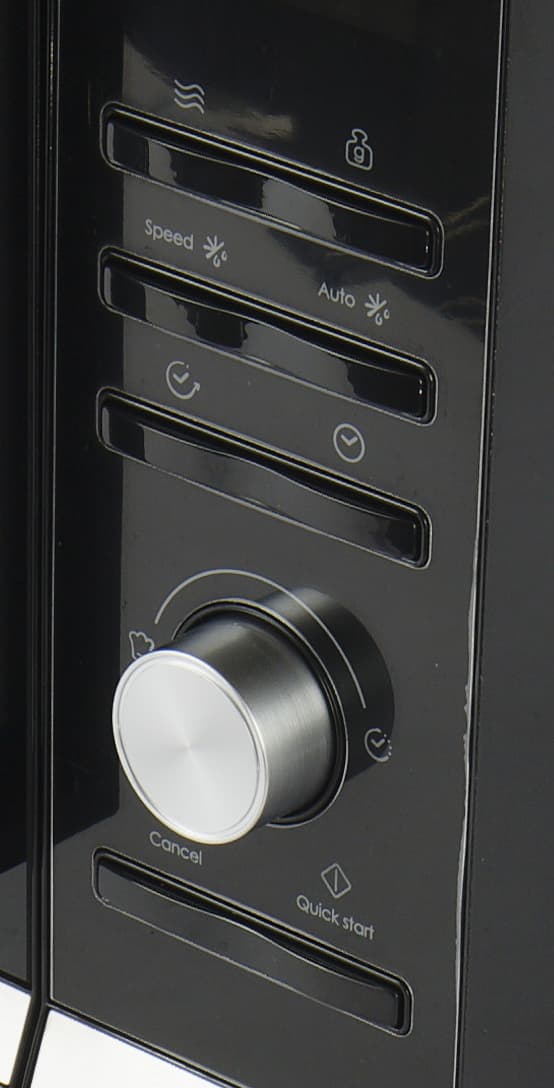 В первый раз переходить к управлению микроволновой печи лучше, вооружившись инструкцией. Хотя по факту ничего сложного в процессе нет. Панель управления находится в привычном месте — с правой стороны корпуса. Наверху находится дисплей, ниже — три ряда кнопок, затем поворотный регулятор и в самом низу — кнопки отмены и быстрого старта.