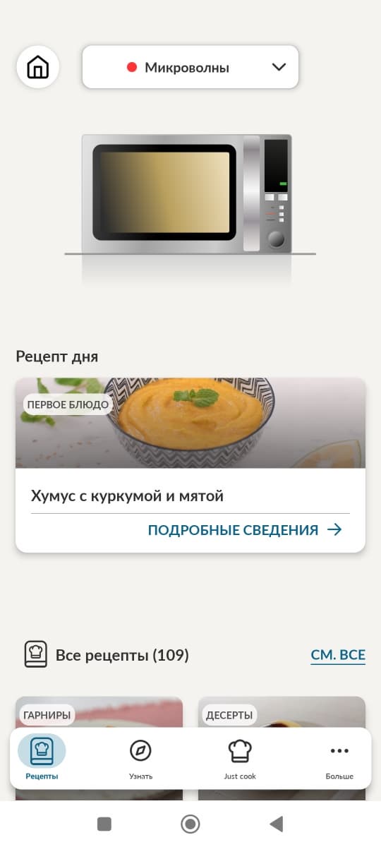 Итак, возможности приложения hOn в части взаимодействия с микроволновой печью Candy CMWA23TNDB-07 ограничены книгой рецептов и полезными советами и рекомендациями. Отметим чрезвычайно продуманный фильтр в разделе рецептов и удобную форму представления рецепта.