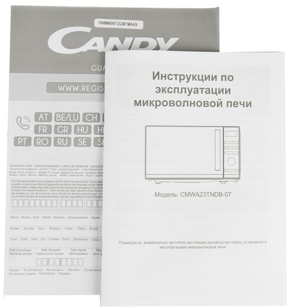 Документ представляет собой толстенькую брошюрку, напечатанную на тонкой бумаге. Информация дается на двух языках — русском и английском. Помимо общих сведений, как то: меры предосторожности и правила безопасности, общие принципы приготовления пищи в микроволновой печи, требования и перечень посуды, пригодной для эксплуатации в данном устройстве, инструкция знакомит пользователя с особенностями управления, настройкой работы и режимами работы конкретно Candy CMWA23TNDB-07. Никаких рецептов в инструкции не содержится.