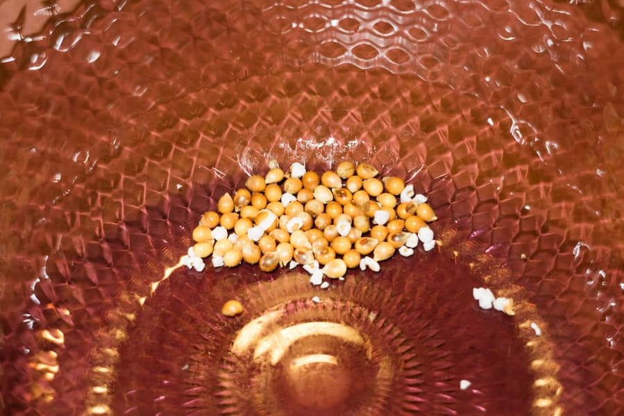 Кукуруза должна была обрабатываться в течение 2 минут 10 секунд. Уже через 25 секунд начали раздаваться первые хлопки. Через 50 секунд хлопки стали частыми. На 1 минуте 20 секундах пакет раздуло, а хлопки раздавались безостановочно. После сигнала о завершении работы были слышны звуки последних раздувающихся зерен.