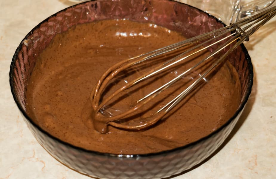 Пшеничная мука — 4 ст. ложки, сахар — 2 ст. ложки, какао-порошок — 1-2 ст. ложки, разрыхлитель — 0,25 ч. ложки, соль — щепотка, яйцо — 1 шт., кефир — 3 ст. ложки, растительное масло — 2 ст. ложки