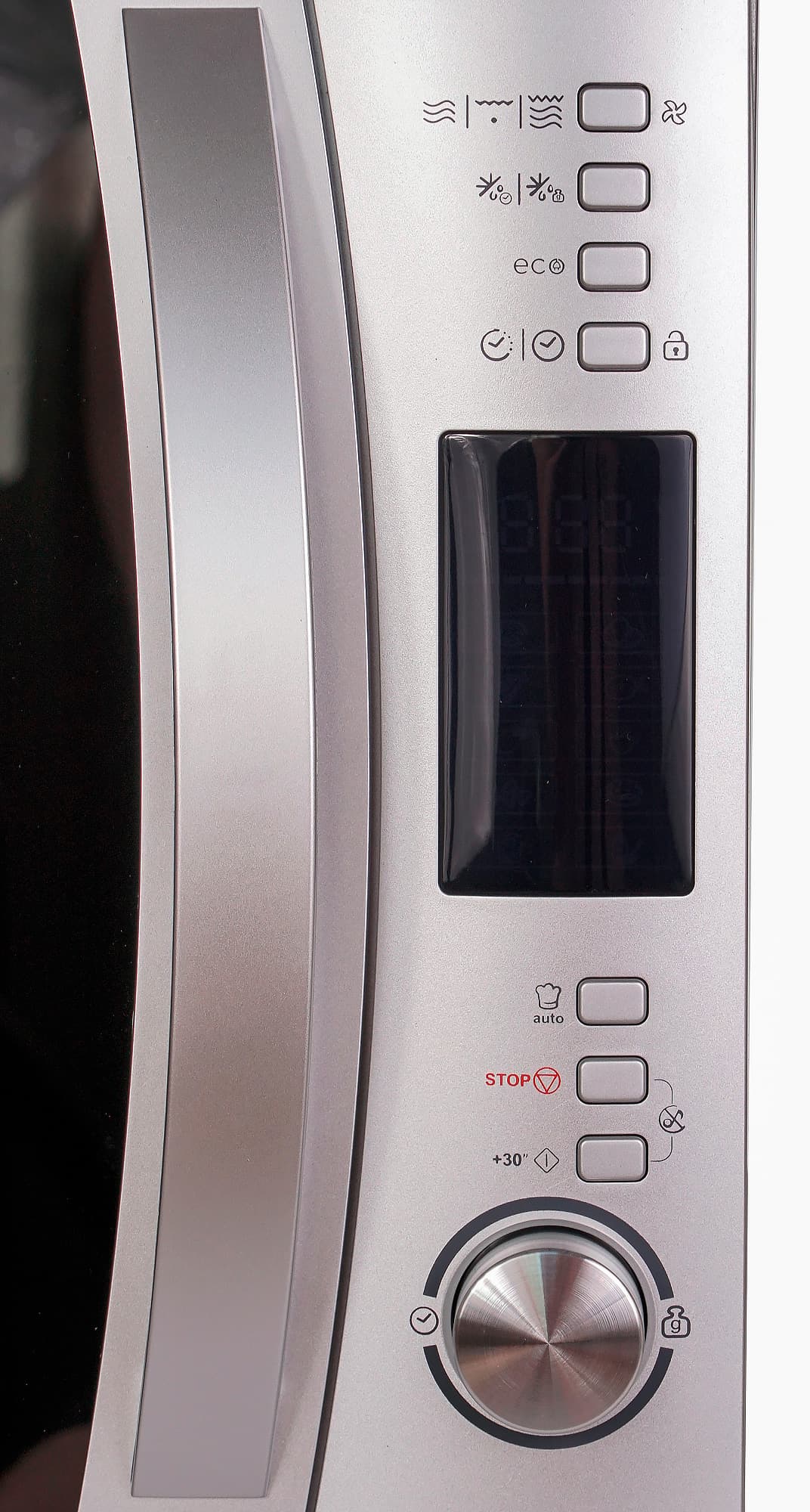 Отметим, что кнопка старт/экспресс запускает режим разогрева на самой высокой мощности на 30 секунд, а каждое последующее нажатие добавляет 30 секунд к текущему времени. Насколько мы знаем, это одна из самых востребованных функций.