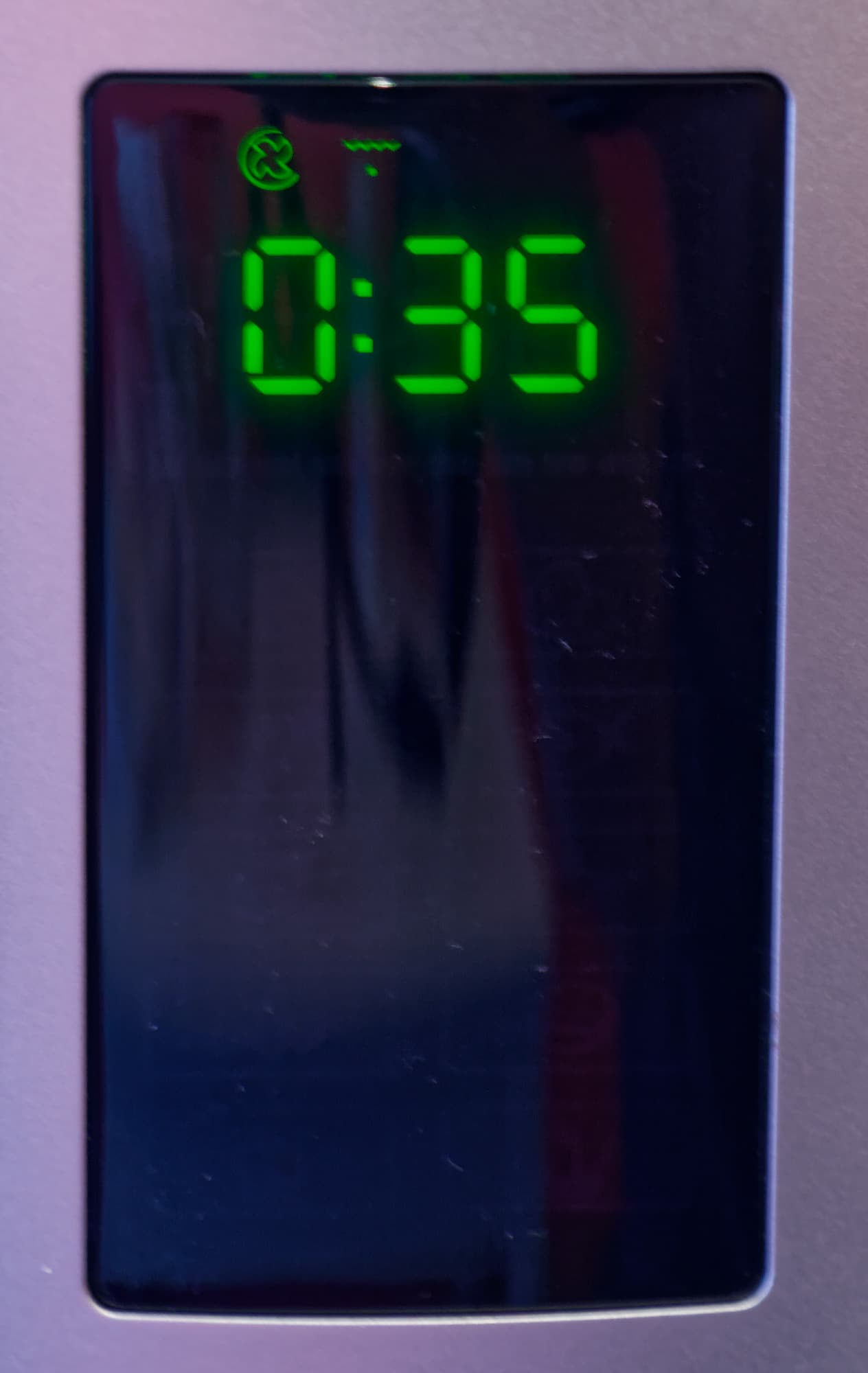 В режиме ожидания на дисплее традиционно отображаются часы, а в процессе приготовления показывается таймер обратного отсчета и иконки выбранного режима.