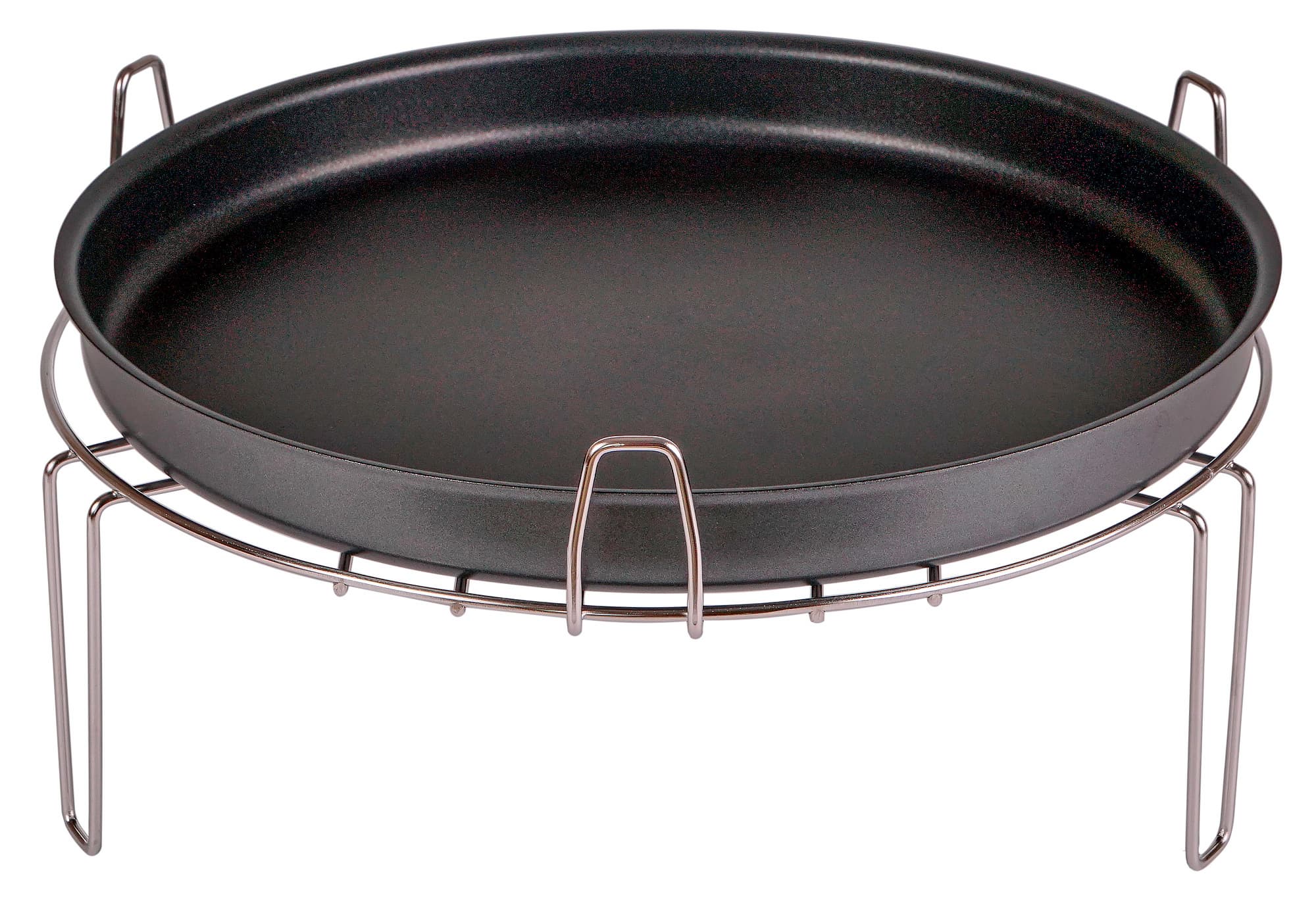 - металлическое блюдо с антипригарным покрытием и резиновой наклейкой на дне (диаметр — 27 см)