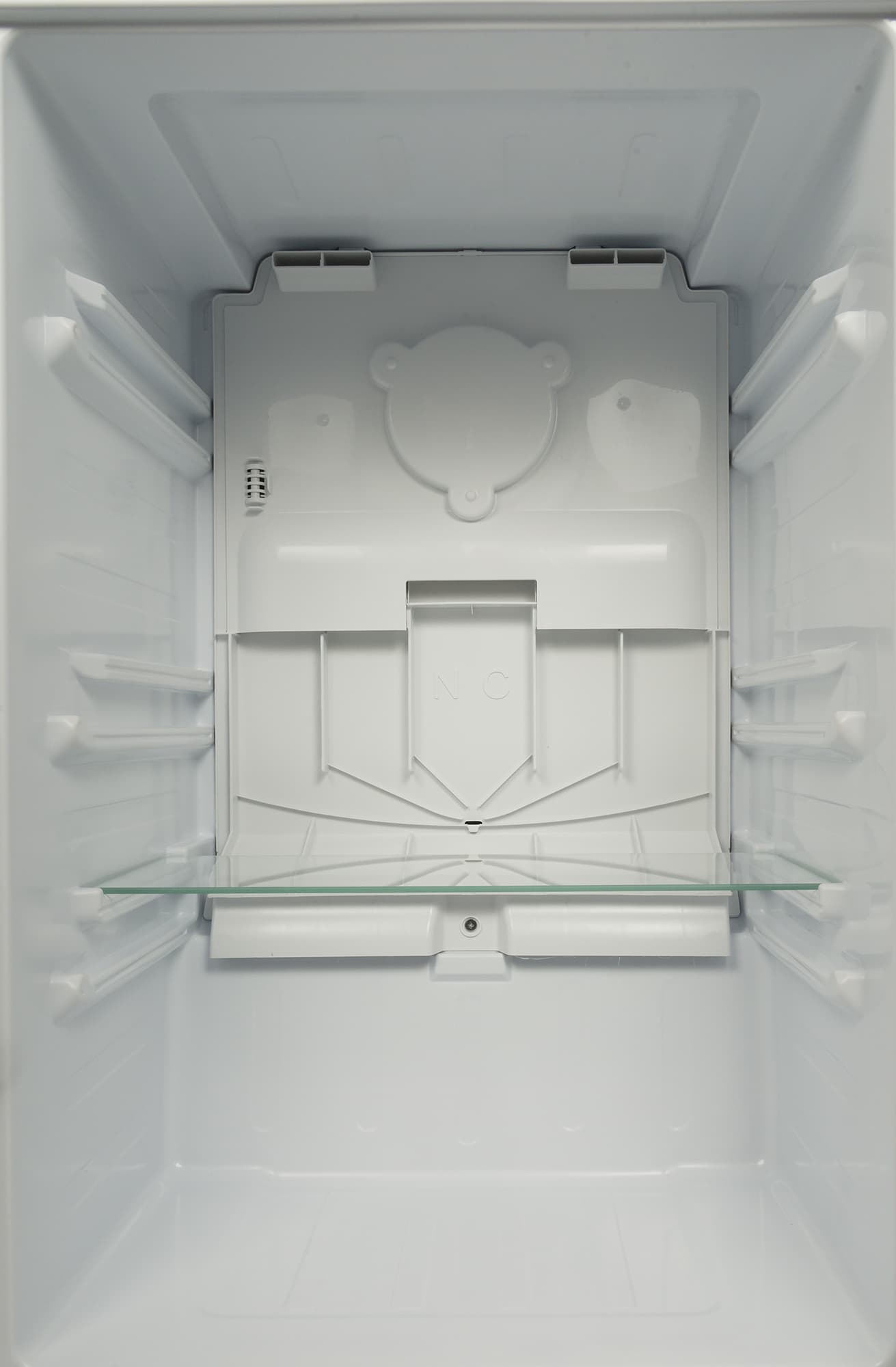 Если извлечь ящик, за ним можно увидеть вентиляционную решетку системы NoFrost. Объем холодильной камеры, согласно официальным техническим характеристикам — 243 литра.